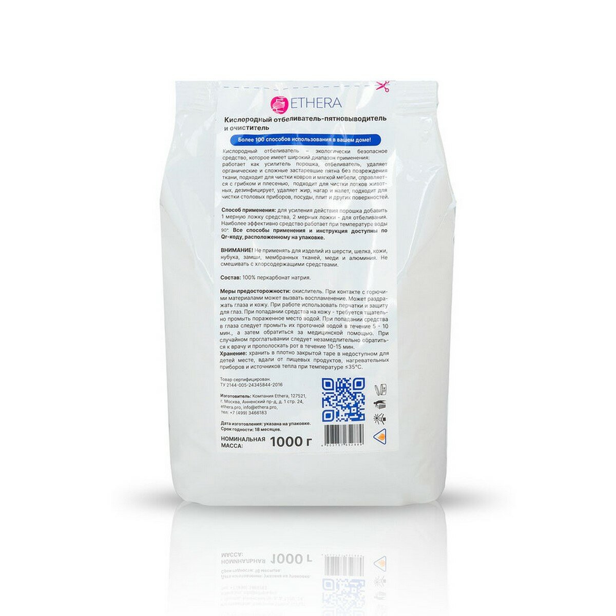 ETHERA Кислородный отбеливатель-пятновыводитель и очиститель, 1000 г интересное: