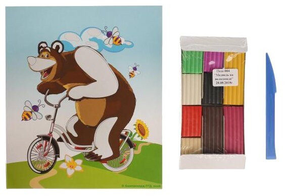 Купить Картина из пластилина маша и медведь "медведь на велосипеде