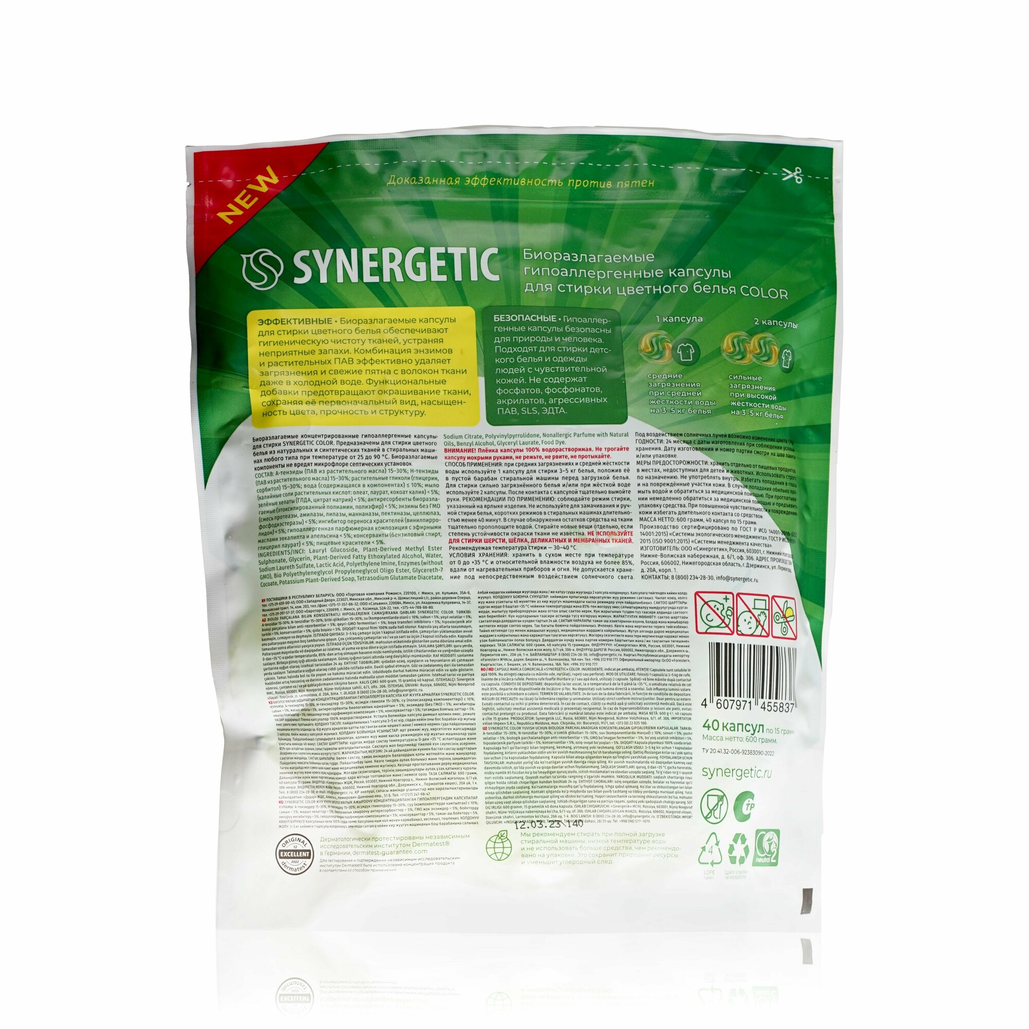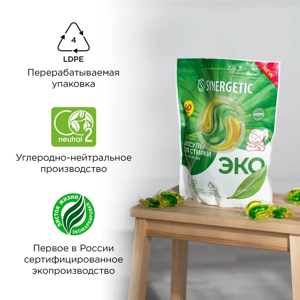 Капсулы для стирки Synergetic COLOR для цветного белья, биоразлагаемые, гипоаллергенные, 40 шт интересное: