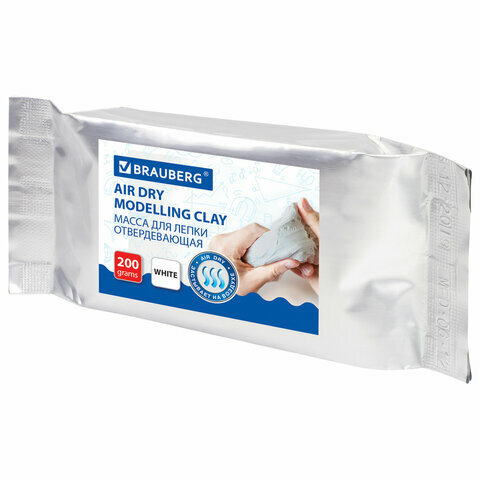 Купить Паста (масса) для моделирования и лепки BRAUBERG, самозатвердевающая, 200 г, белая, высшее качество, 224441