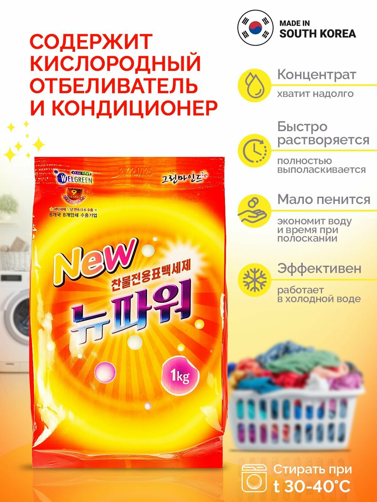Стиральный порошок автомат детский гипоаллергенный 1 кг Корея WELGREEN