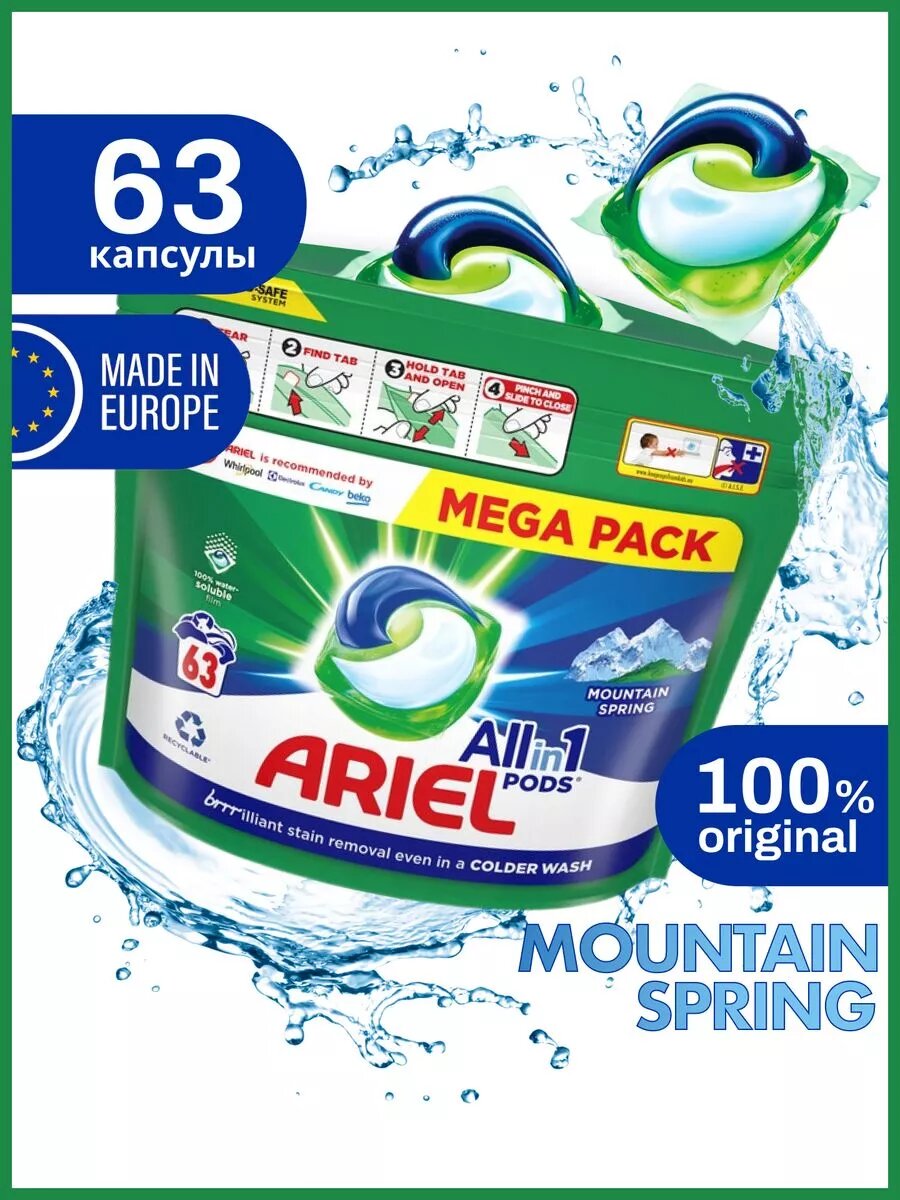 Капсулы для стирки Ariel Все в 1 Pods Горный родник (72 шт)