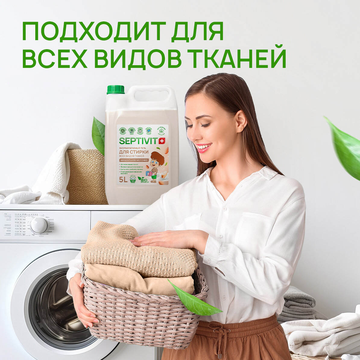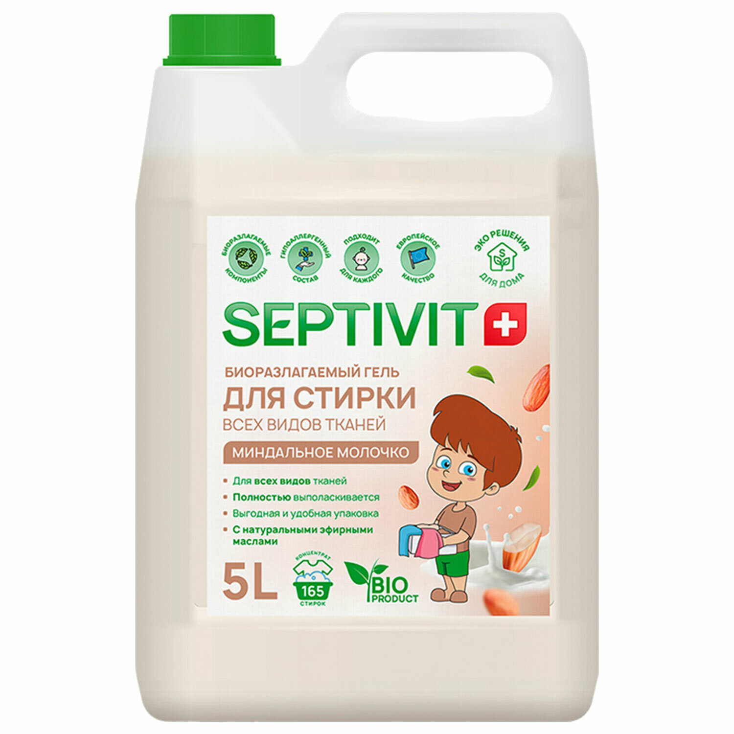 Купить Гель для стирки Septivit для всех видов ткани Миндальное молочко, 5л