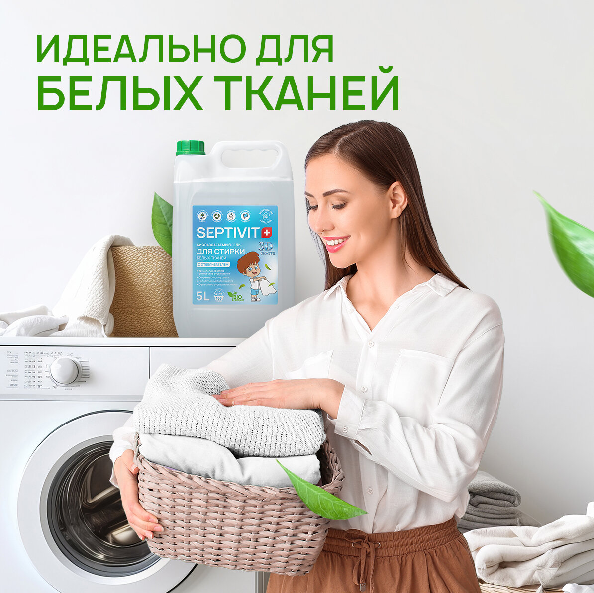 Гель для стирки Белого белья SEPTIVIT / Гель для стирки детского белья гипоаллергенный / Средство для стирки, 5л