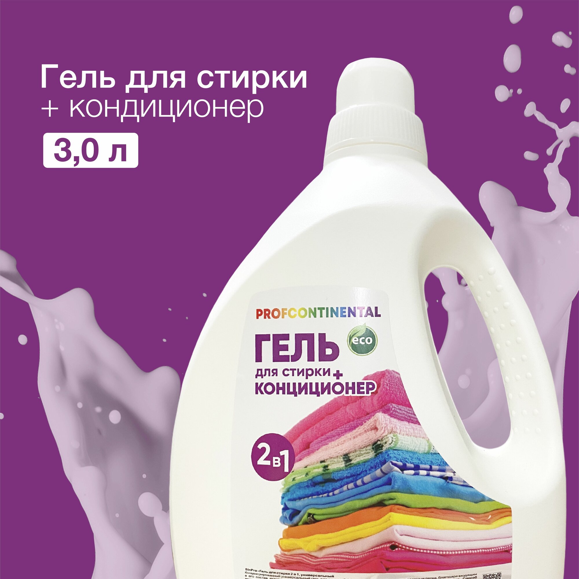 Гель для стирки Profcontinental 2в1 с Кондиционером 3 литра интересное: