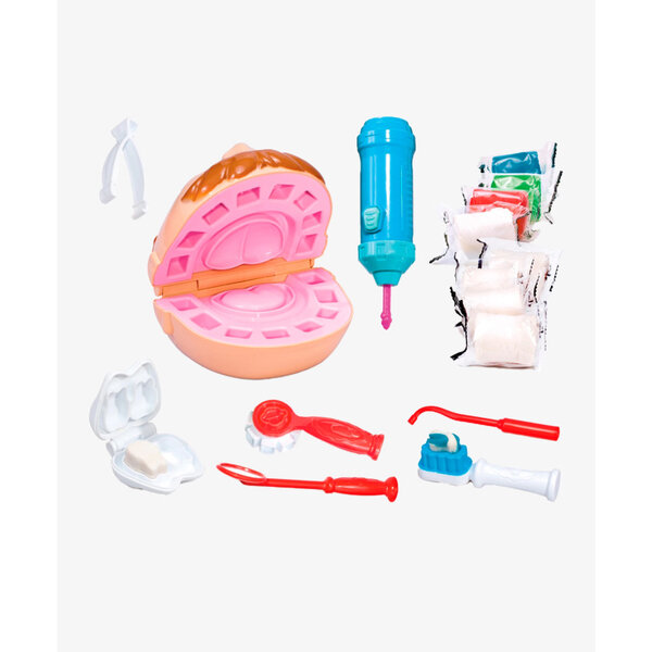 | Комплектация | тесто-пластилин / инструменты для лепки / бормашина / формы для создания макета пациента / зубная щетка / пинцет / зеркальце / инструмент для создания брекетов / зонд / формочка для лепки зубов |