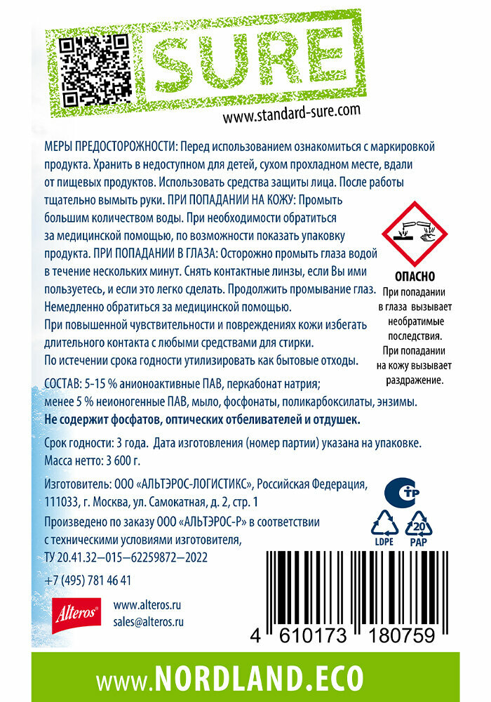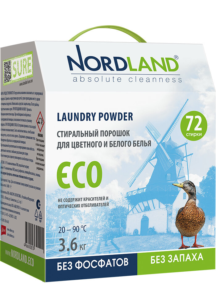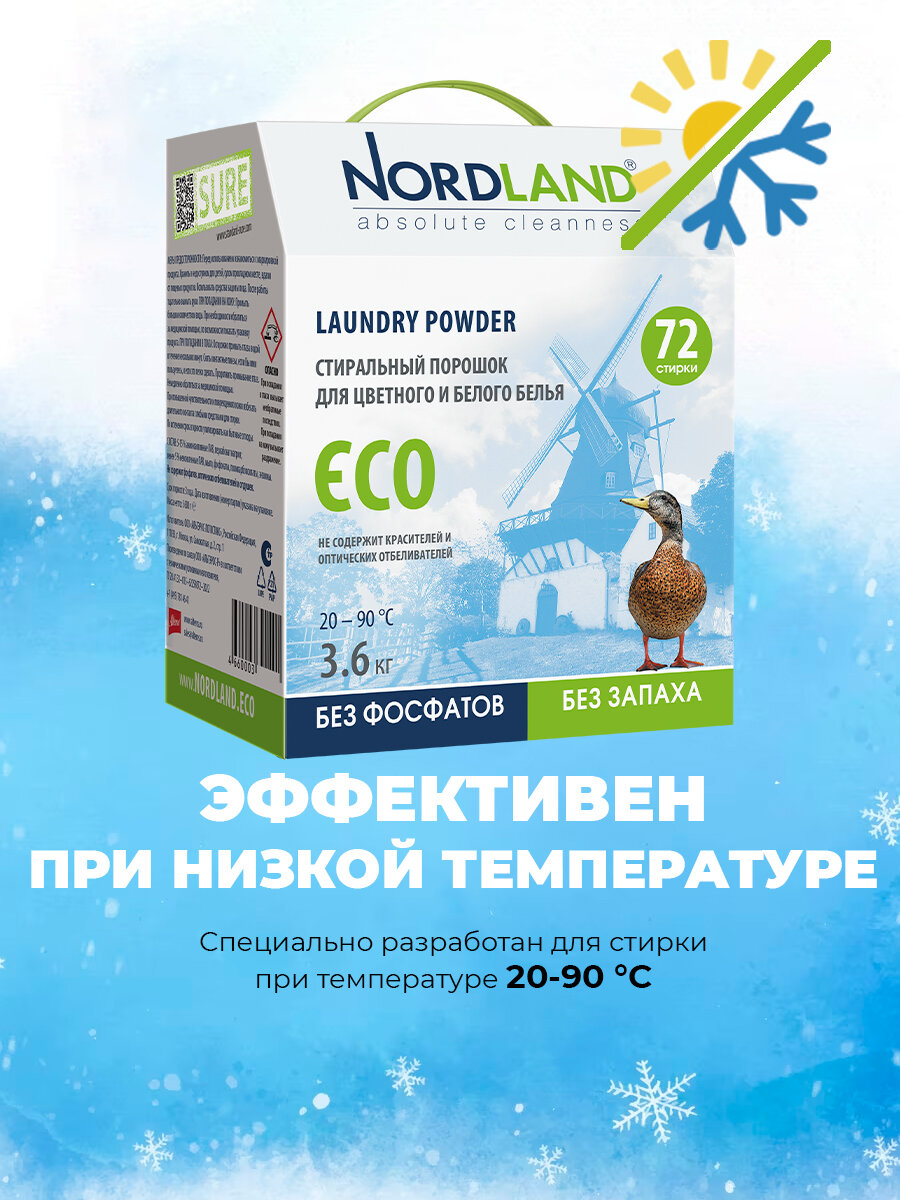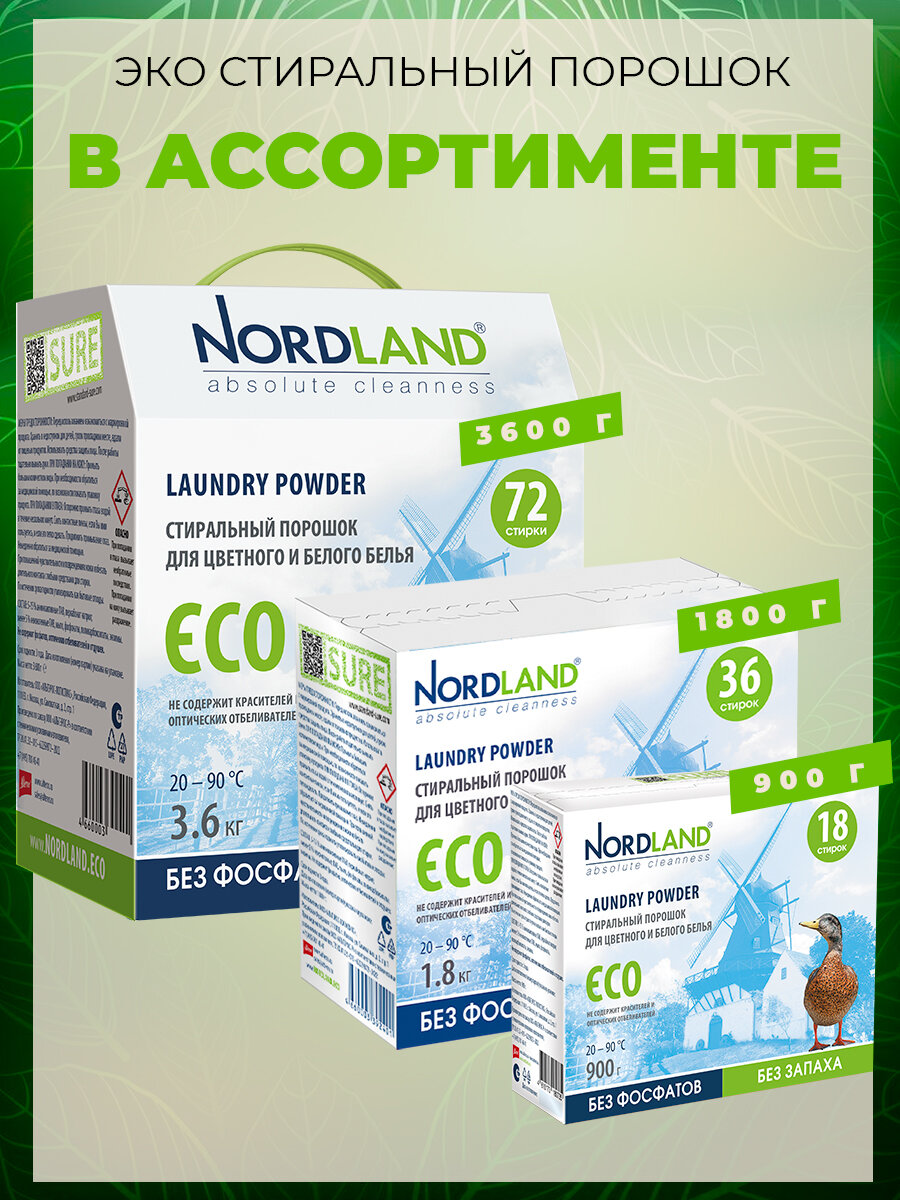Nordland Стиральный порошок ECO 3,6 кг/72 стирки интересное: