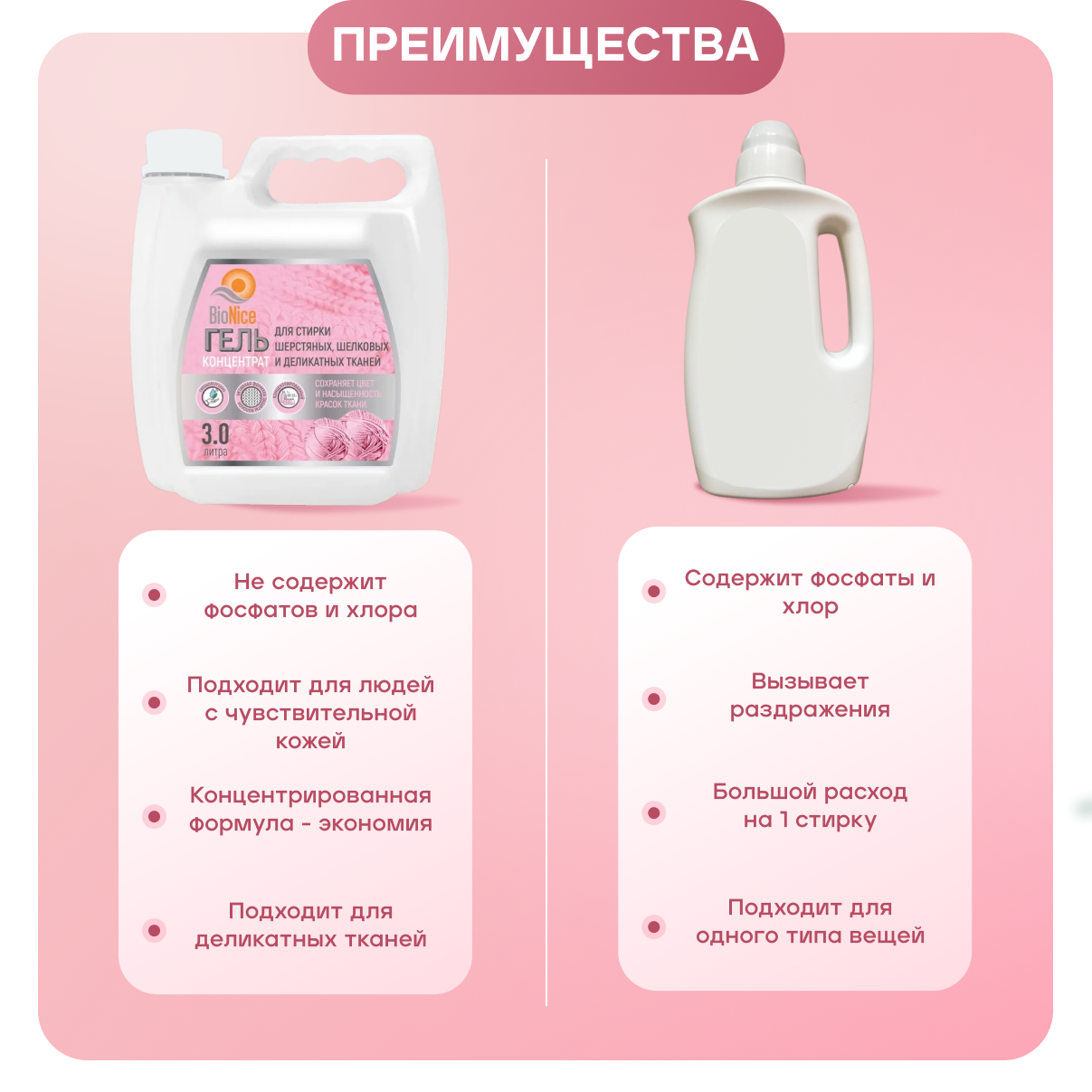 Гель-концентрат для стирки шерстяных, шелковых и деликатных тканей BioNice интересное: