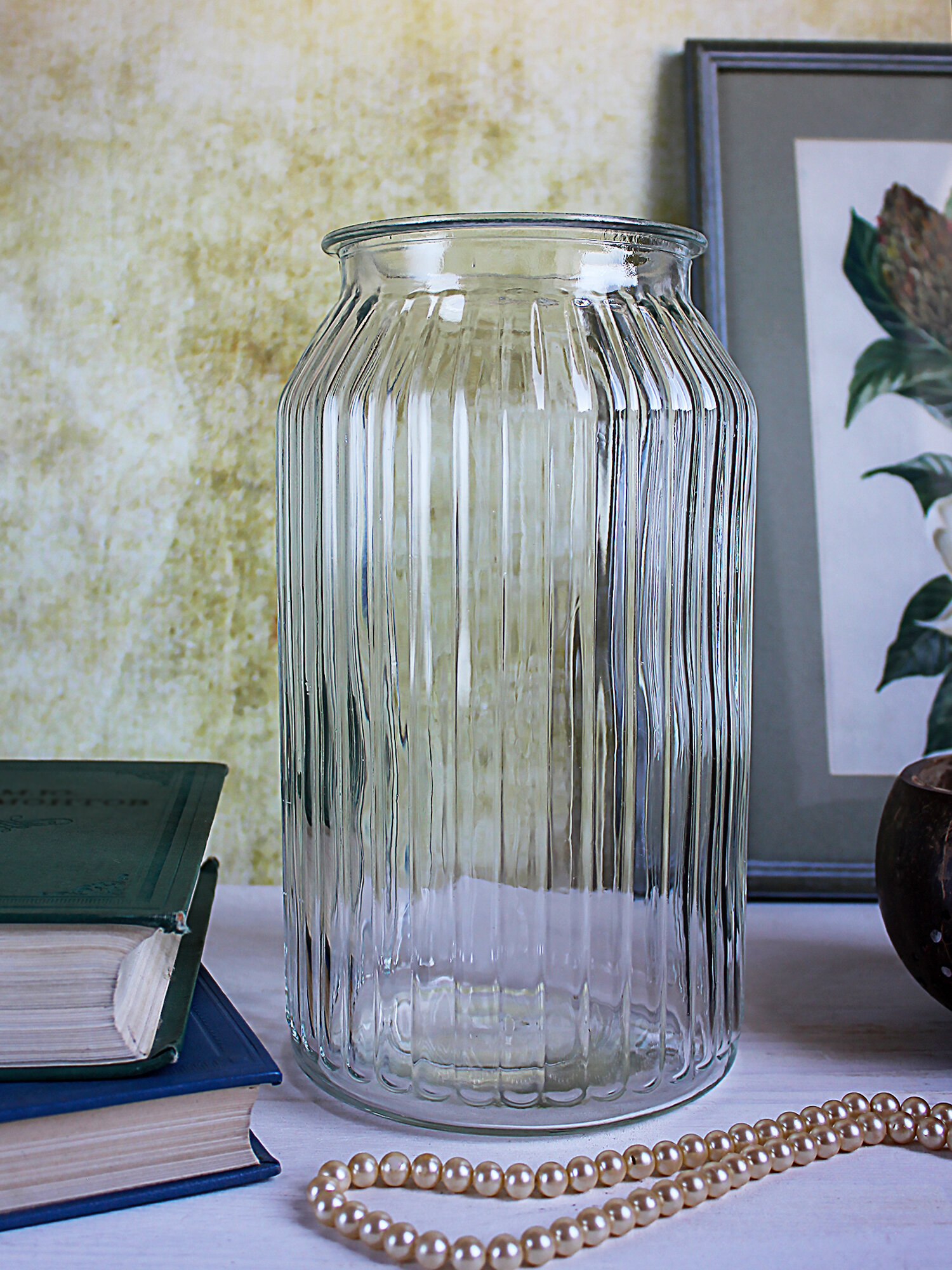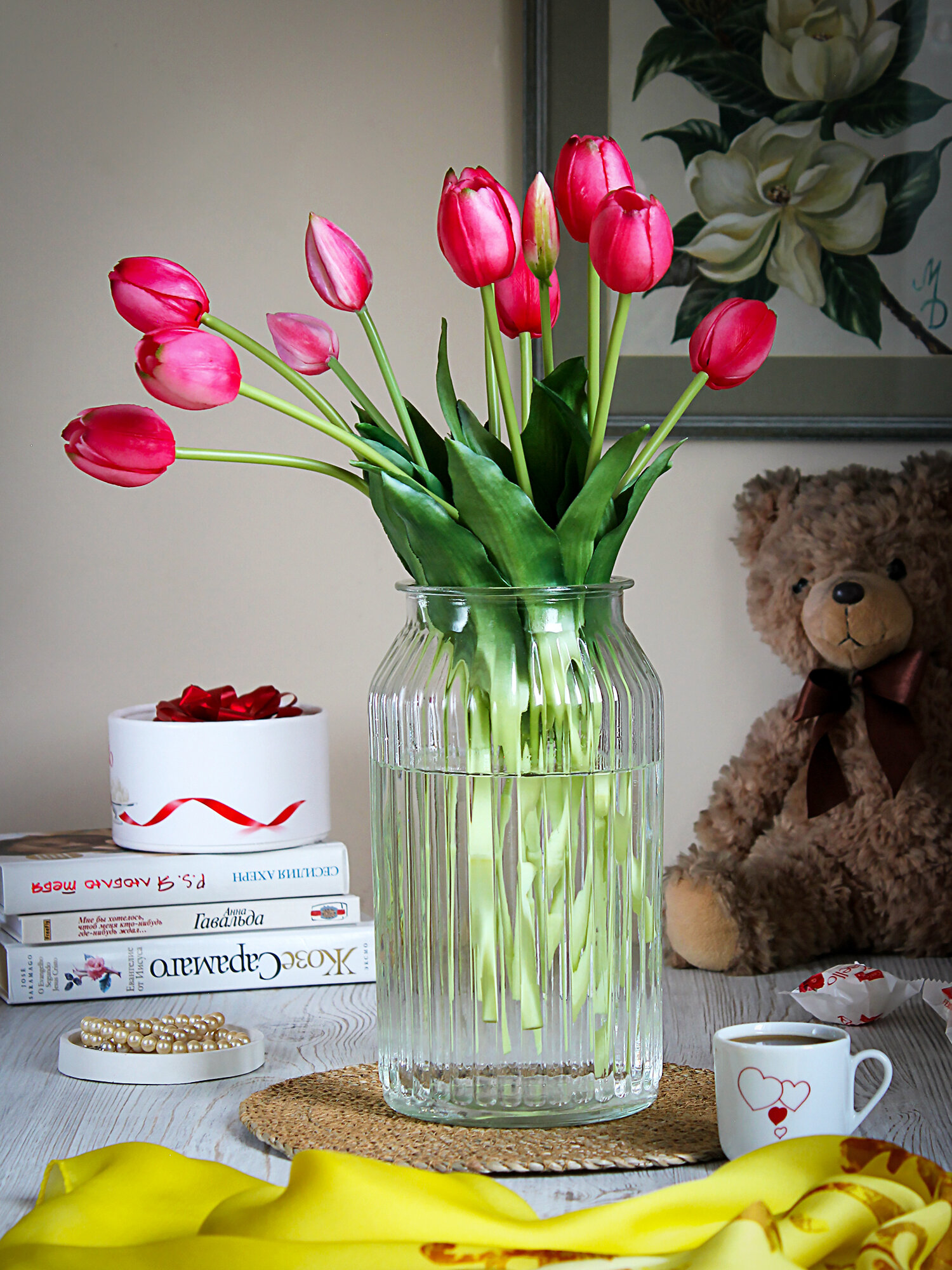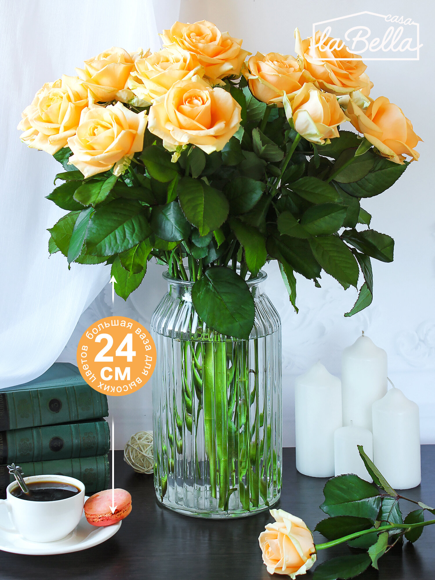 Прозрачная ваза для цветов стеклянная настольная 24 см интересное: