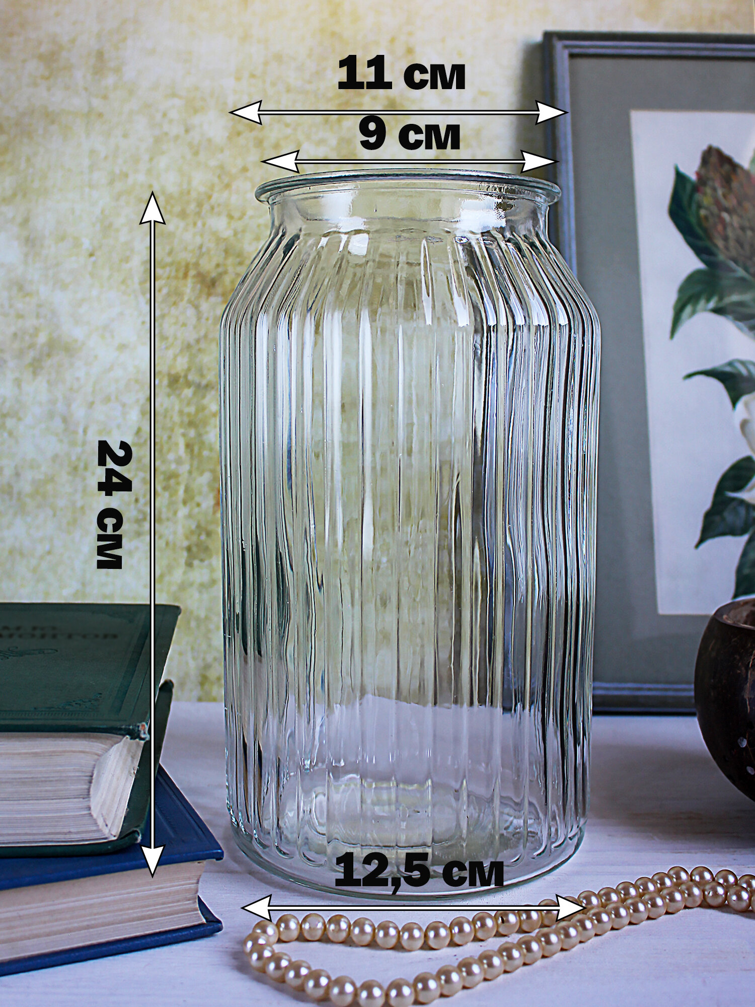 Ваза для цветов стеклянная, большая высокая, для декора 24 см