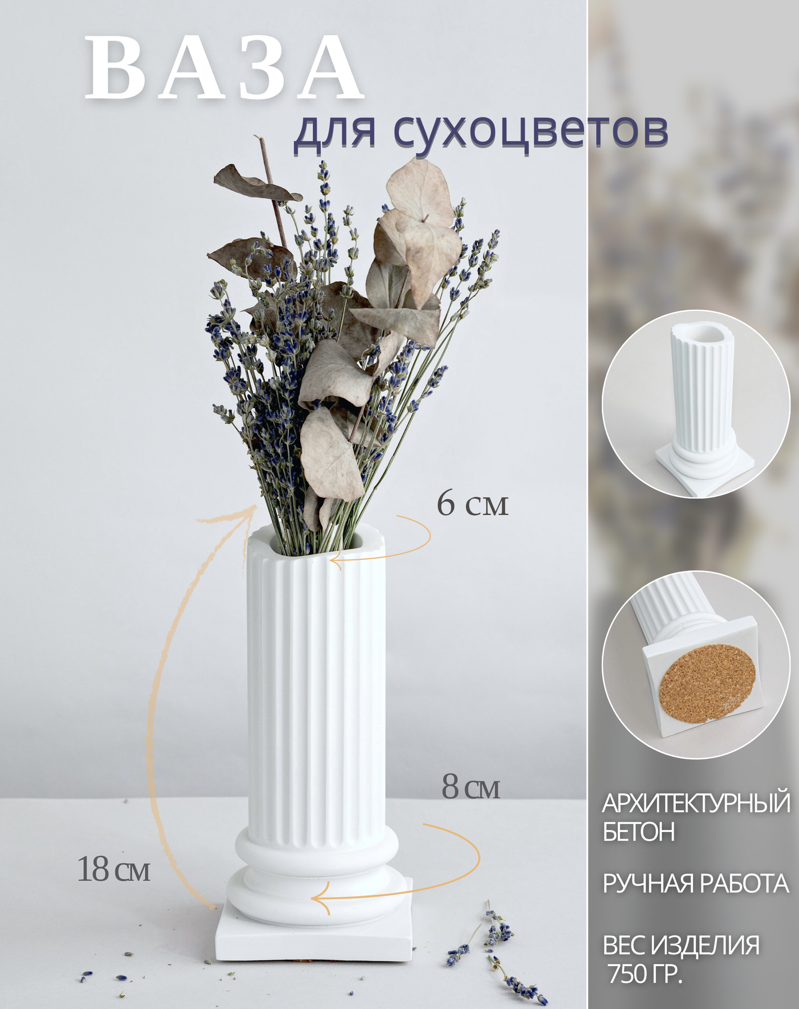Ваза для сухоцветов из архитектурного бетона, DOLOMIT home, В003, 18 см, белая интересное: