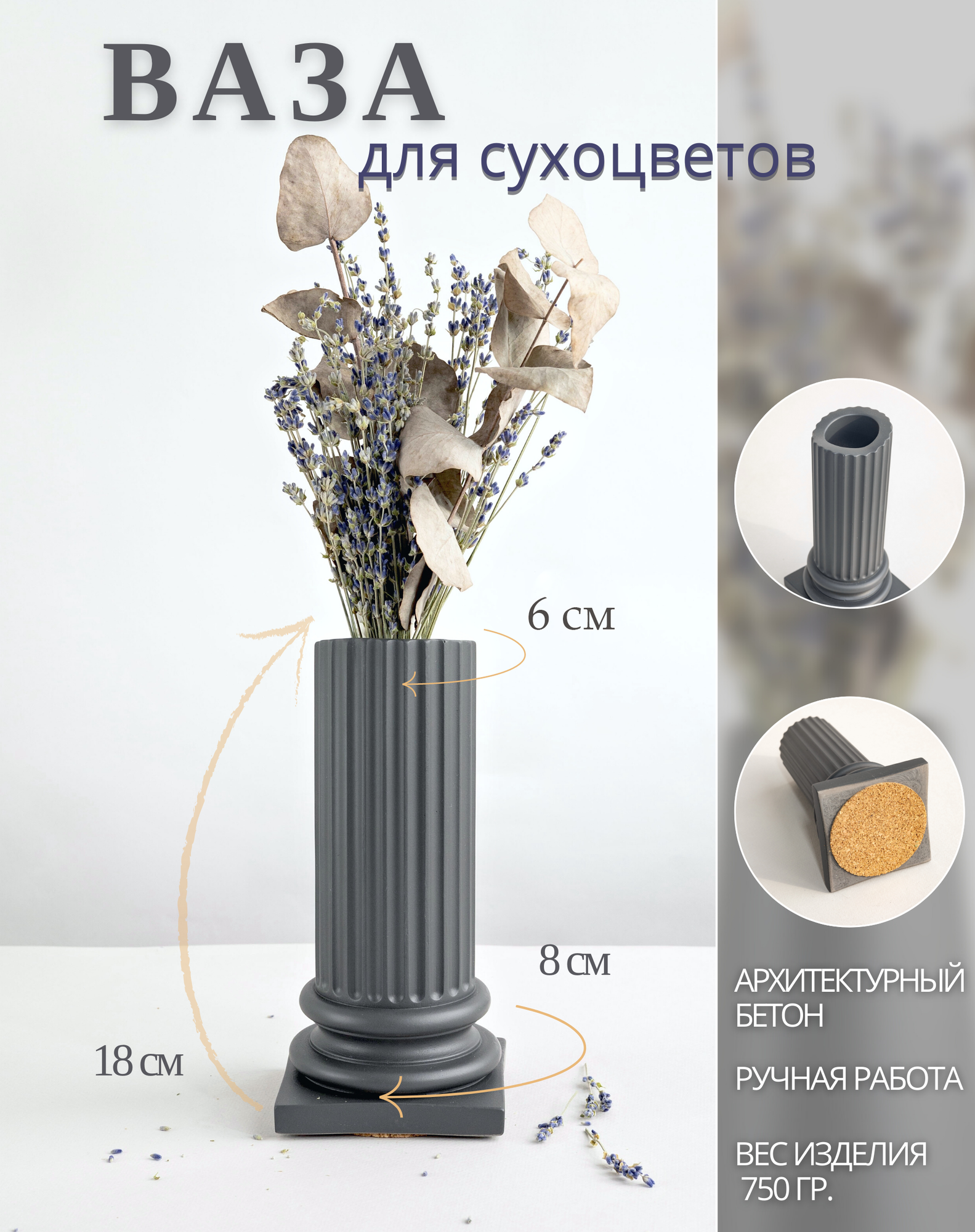 Ваза для сухоцветов из архитектурного бетона, DOLOMIT home, В003, 18 см, цвет графит интересное: