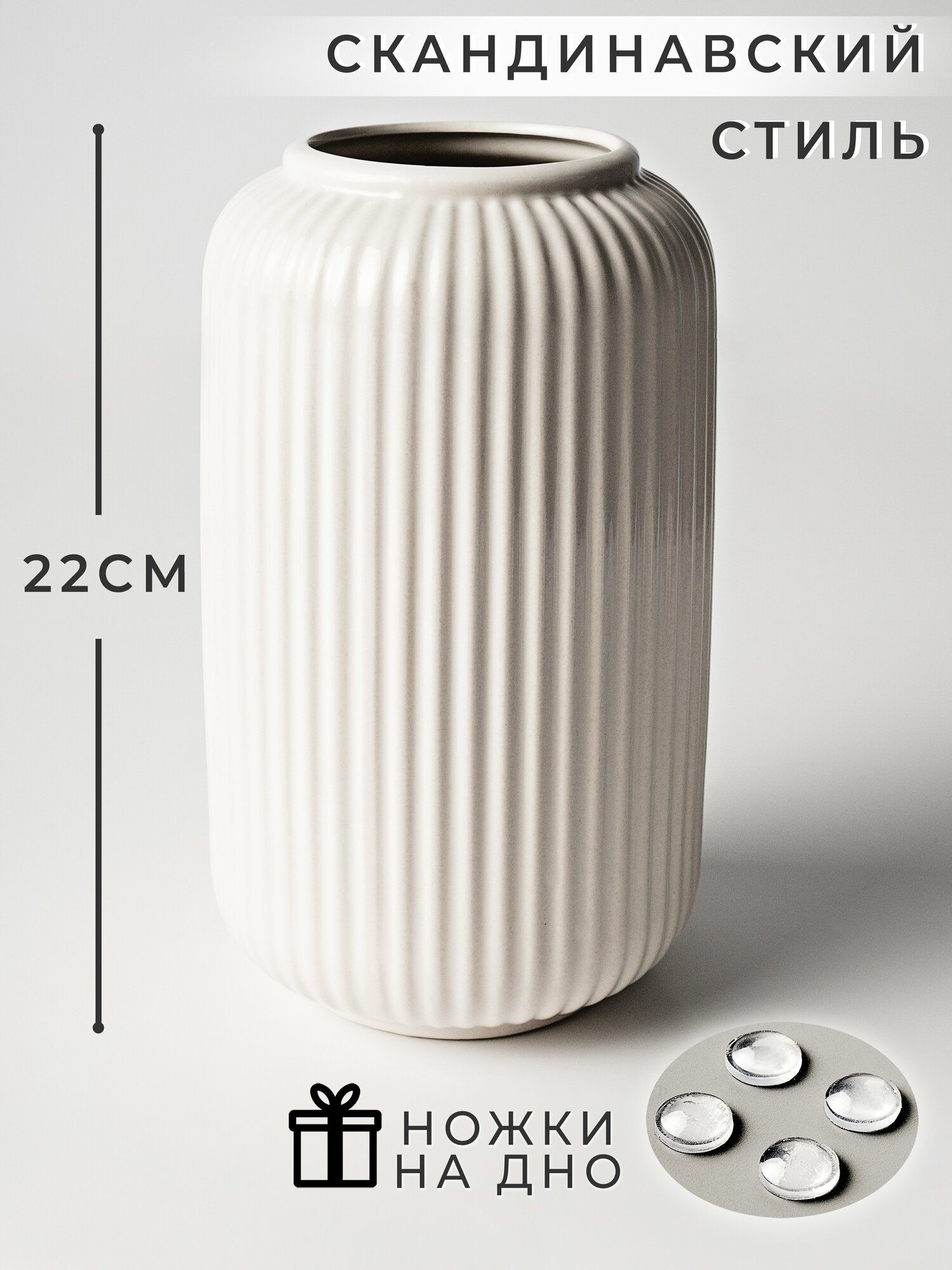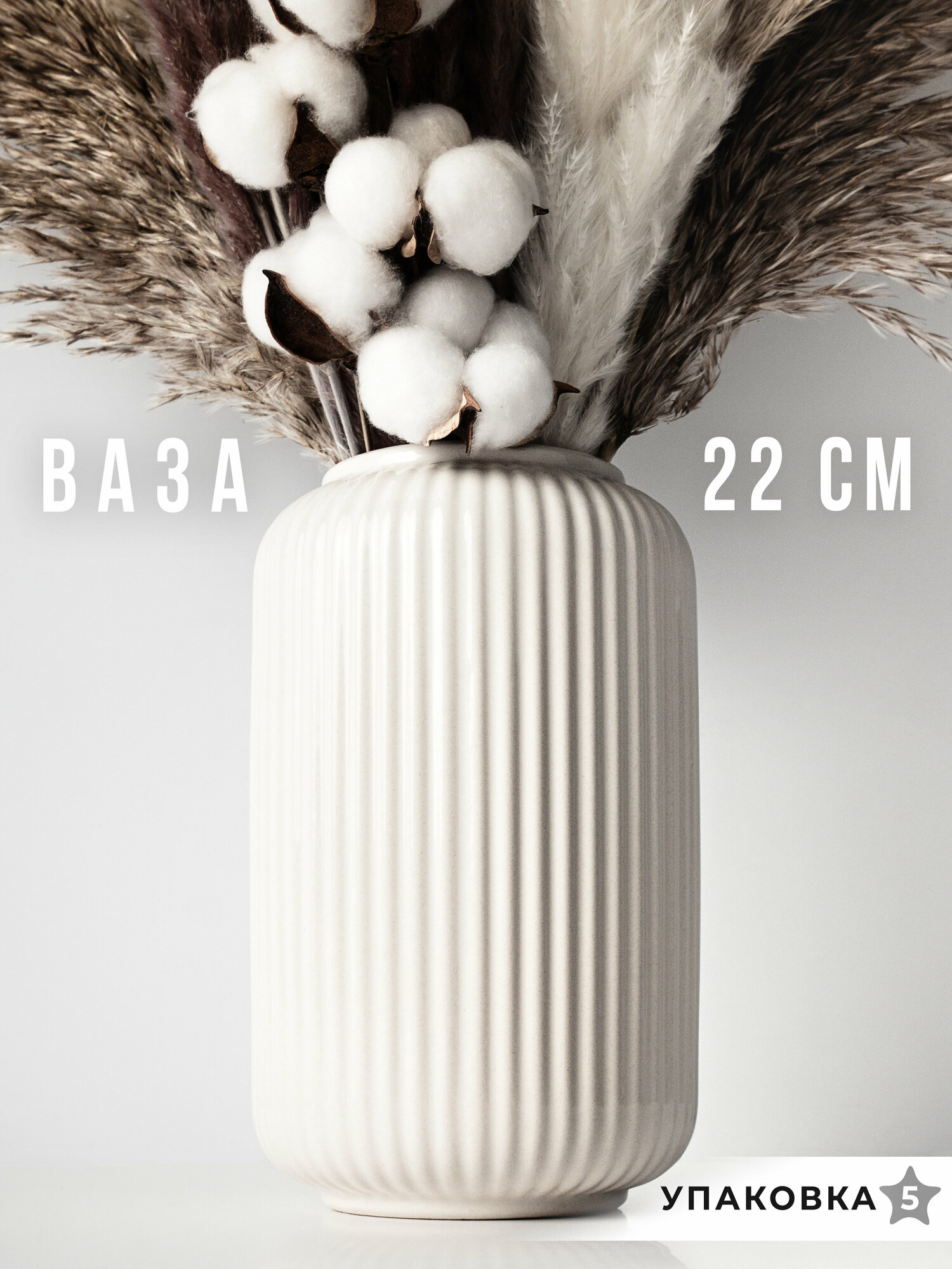 Белая керамическая ваза для цветов и сухоцветов ARANTA высотой 22см интересное: