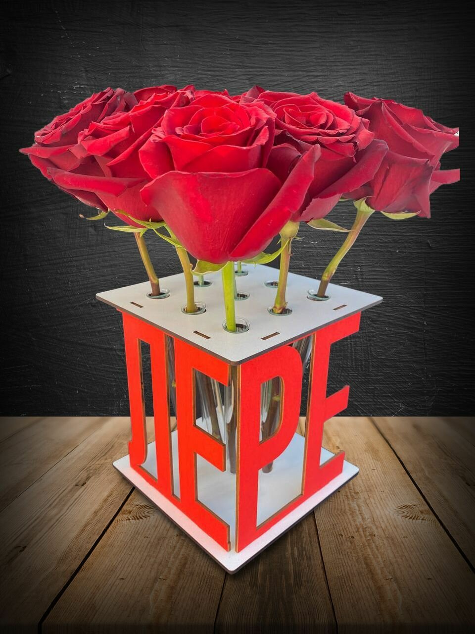 Подарок девушке, ваза для цветов, подставка с именем Лена, сувенир на день рождения 8 марта 14 февраля годовщину Новый Год