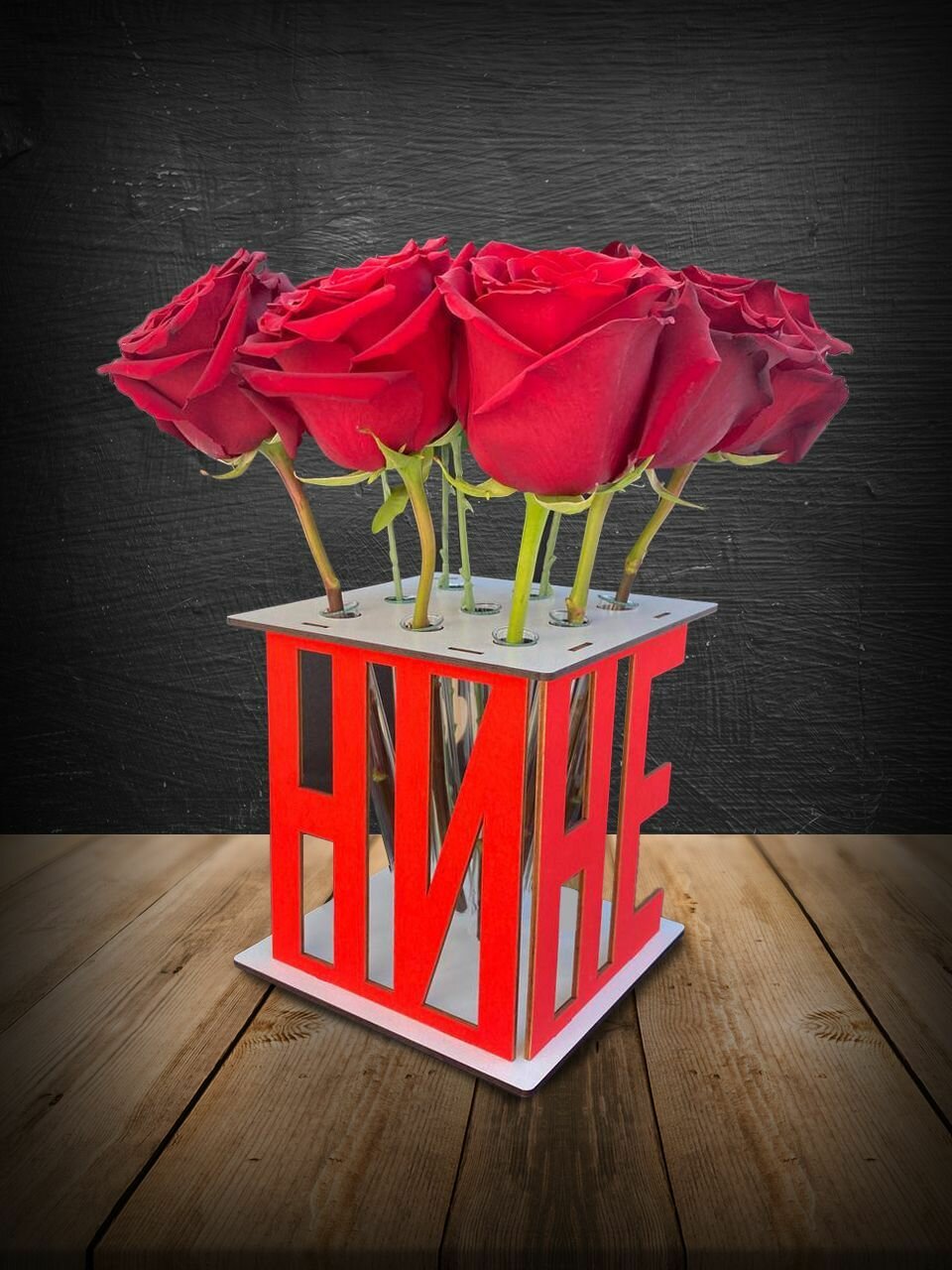 Подарок девушке, ваза для цветов, подставка с именем Лена, сувенир на день рождения 8 марта 14 февраля годовщину Новый Год