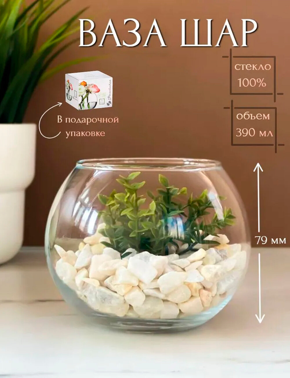 | Дополнительная информация | Круглая стеклянная прозрачная ваза бренда Pasabahce. |