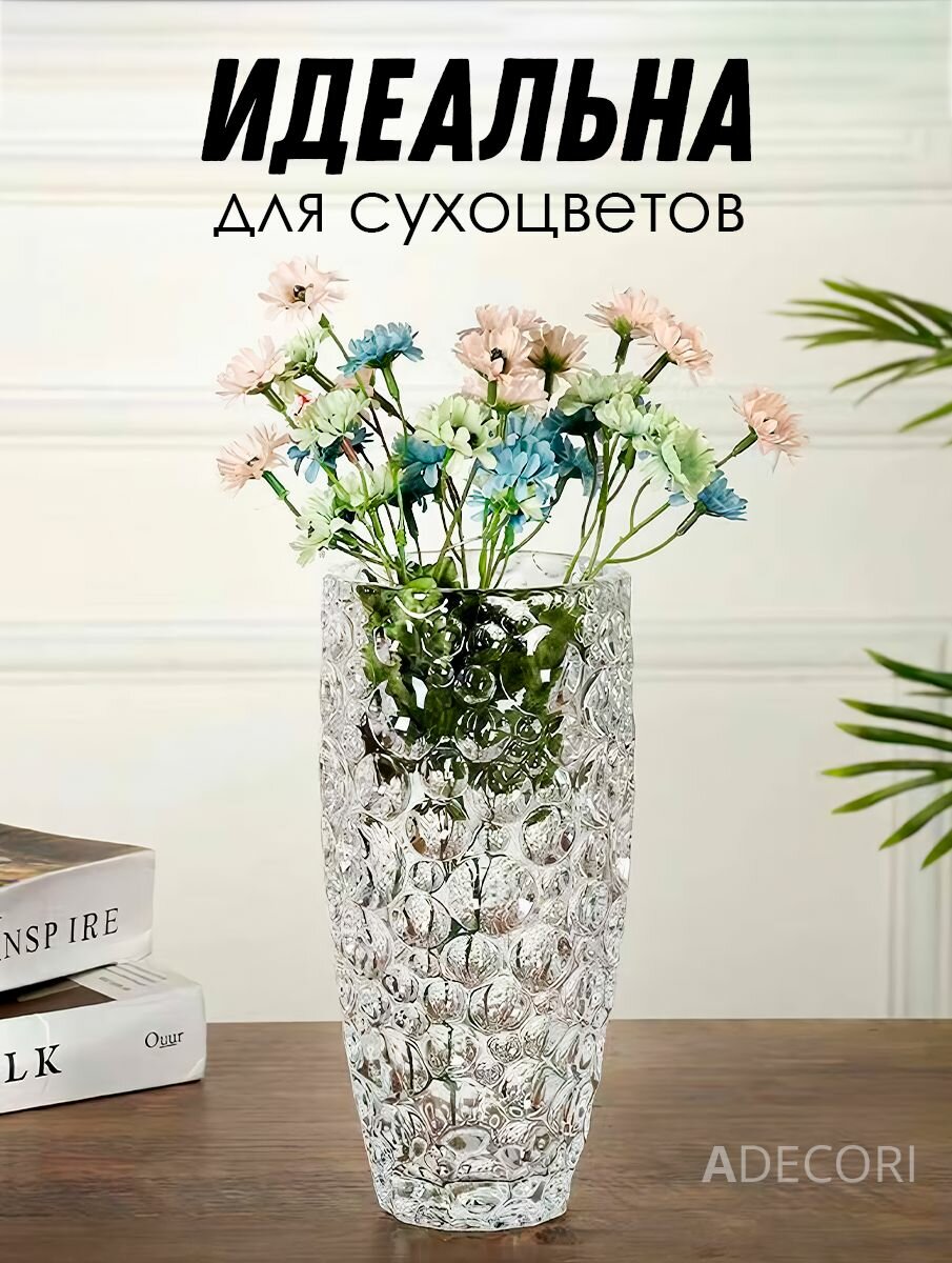 Ваза стеклянная интерьерная, 24 см, прозрачная, Теона интересное: