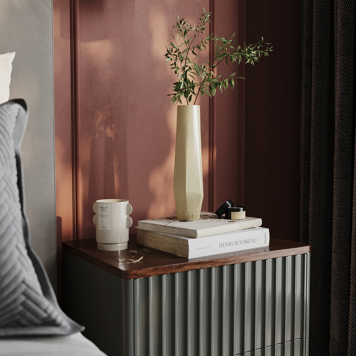 Декоративная ваза для сухоцветов Megan M, 30 см, бетон, серая глянцевая