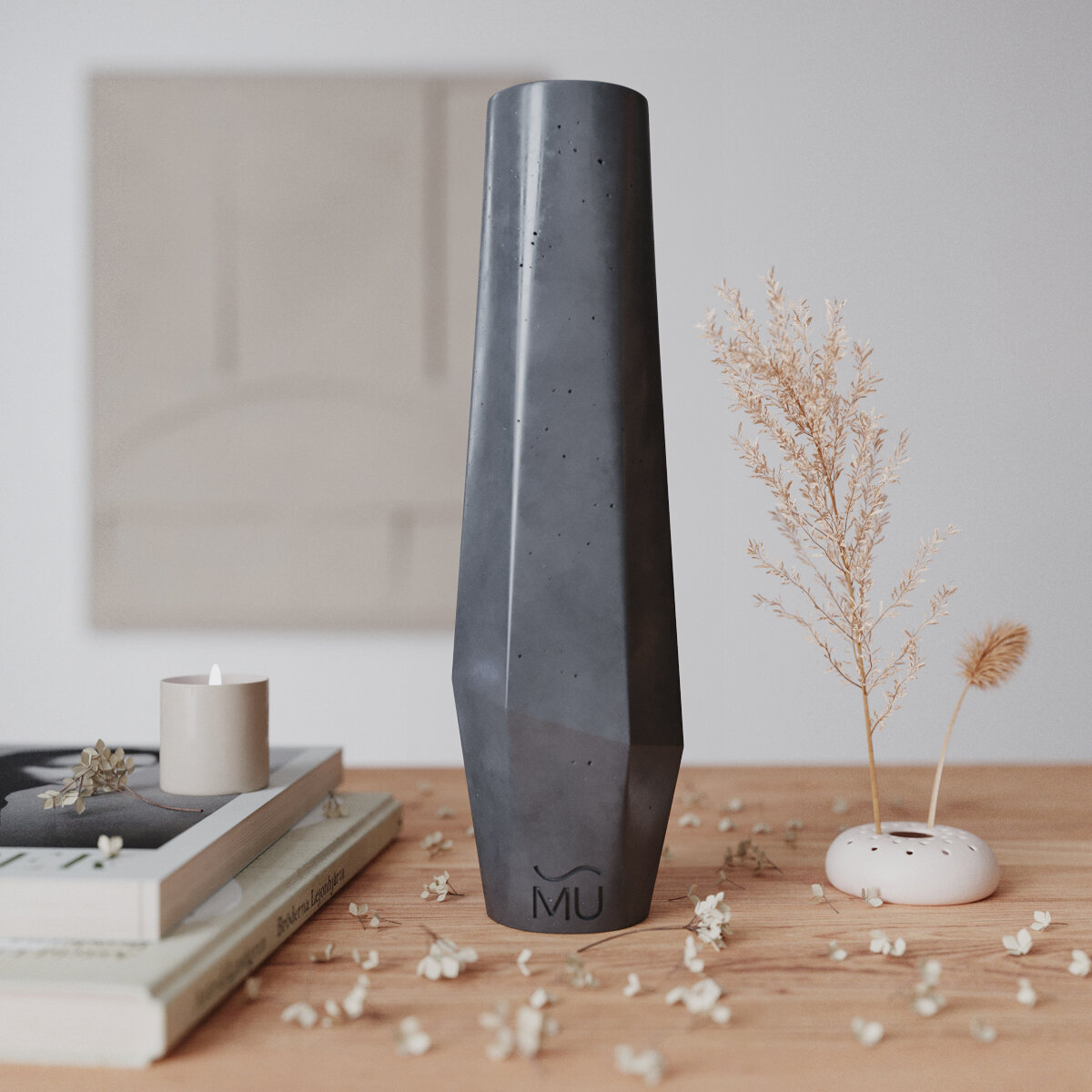 Декоративная ваза для сухоцветов Megan M, 30 см, бетон, серая матовая