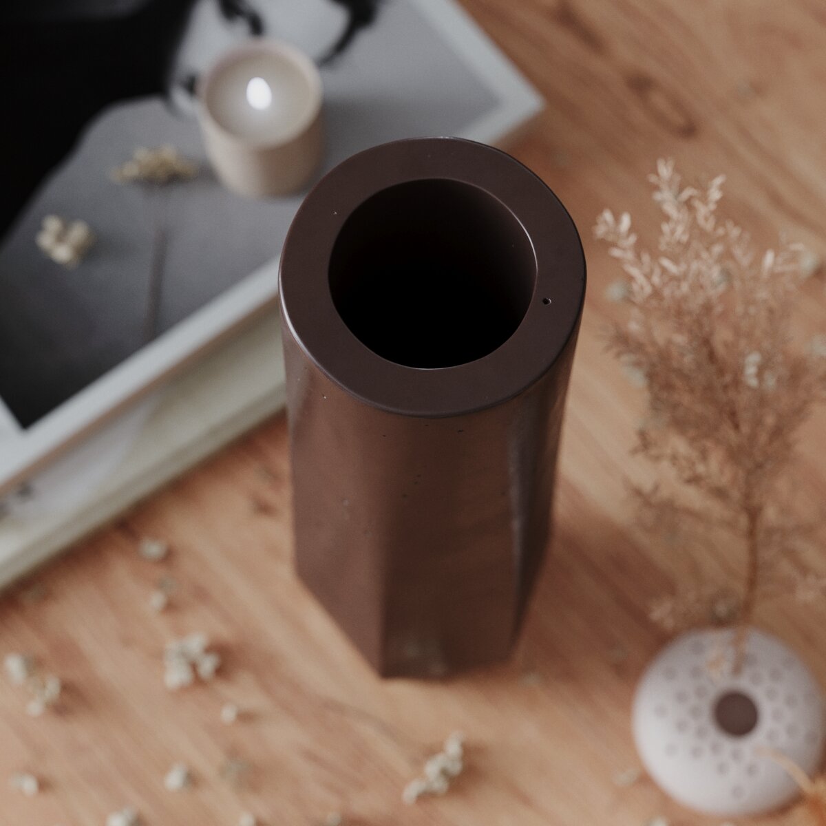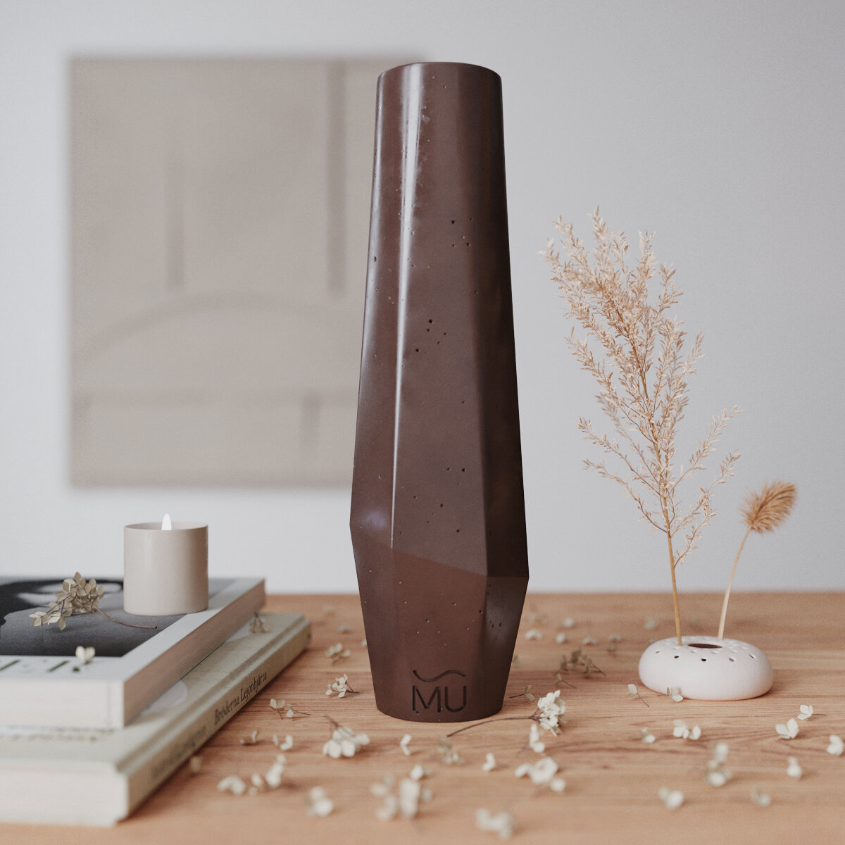 Декоративная ваза для сухоцветов Megan M, 30 см, бетон, коричневая матовая