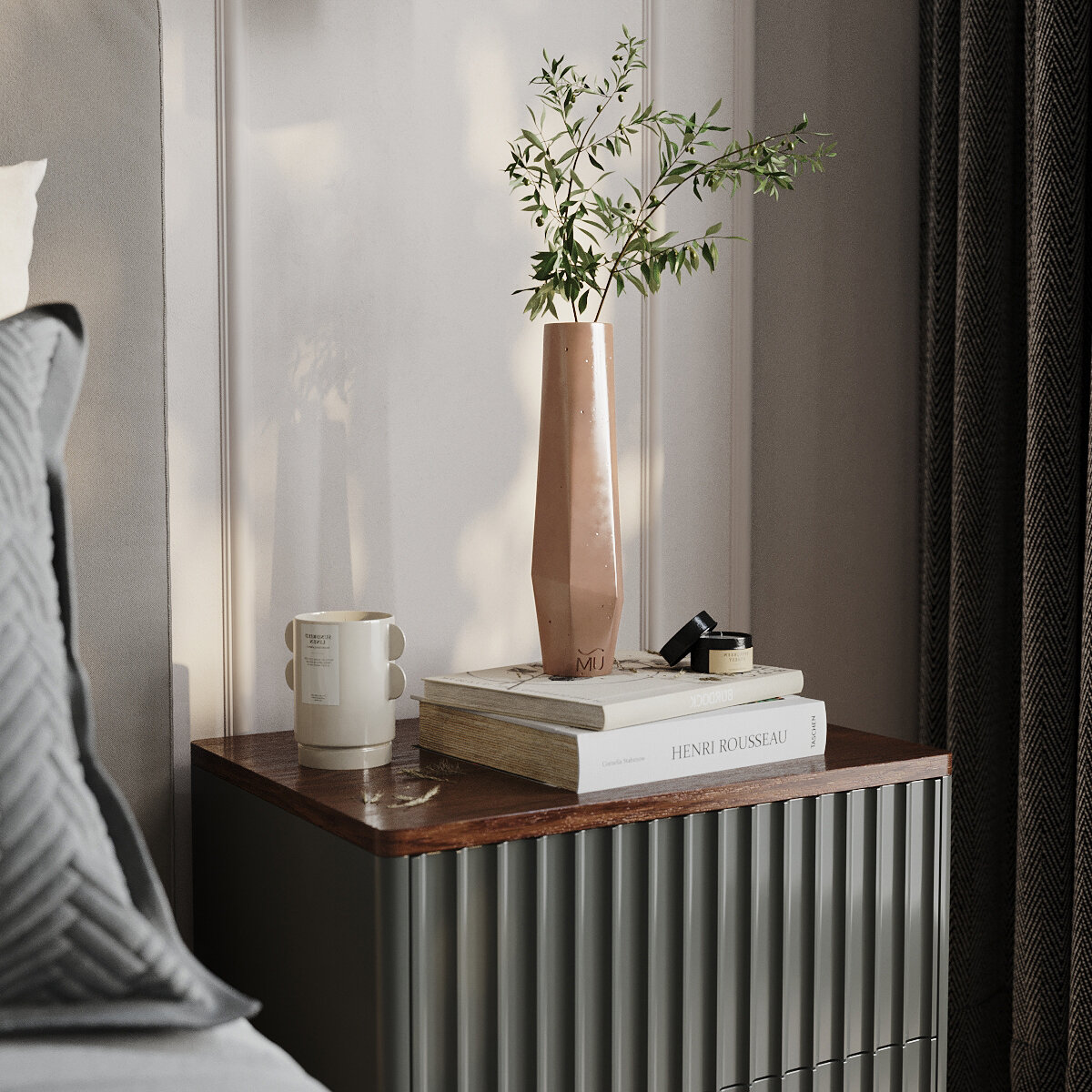 Декоративная ваза для сухоцветов Megan M, 30 см, бетон, серая глянцевая