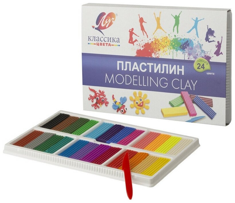 Пластилин для лепки детский набор 'Классика', 24 цвета, со стеком, Луч