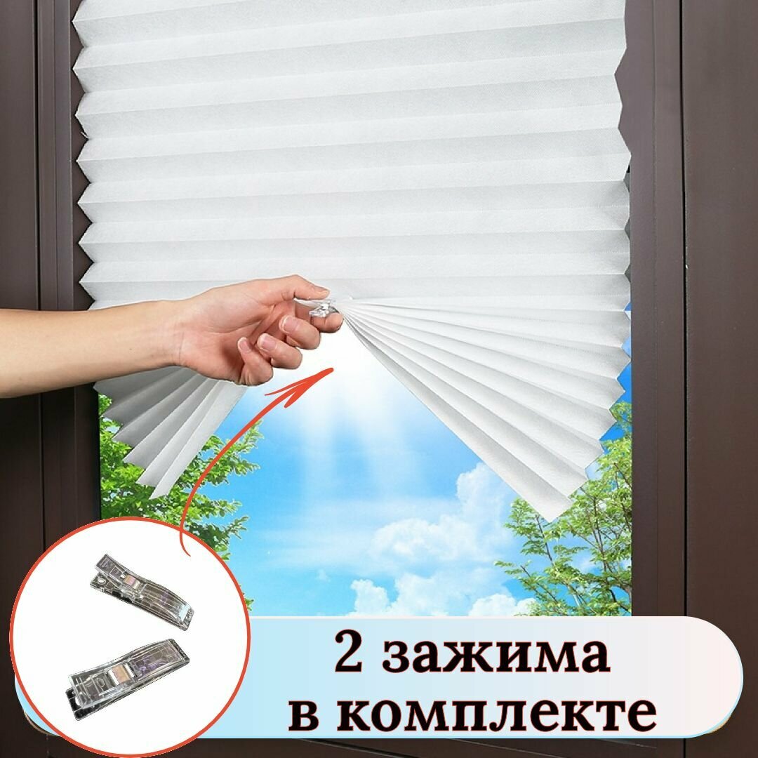 Самоклеящиеся шторы-плиссе на пластиковые окна размер 60х180см, цвет белый Приглушают свет, не блокируя его Крепление без сверления