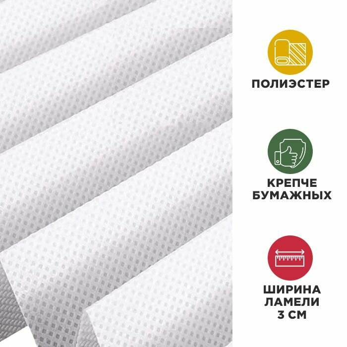 | Комплектация | Жалюзи из нетканого материала, два пластиковых зажима для регуляции длины |
