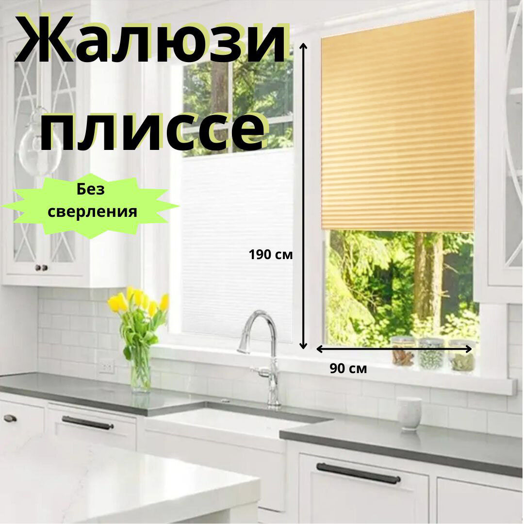 Жалюзи плиссе на окна и дверь самоклеящиеся 90х180 см полиэстер, бежевые