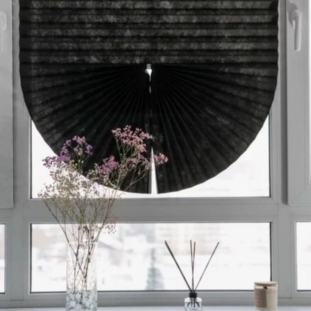 Жалюзи плиссе, чёрный блэкаут, 90х180см, самоклеящиеся, без сверления