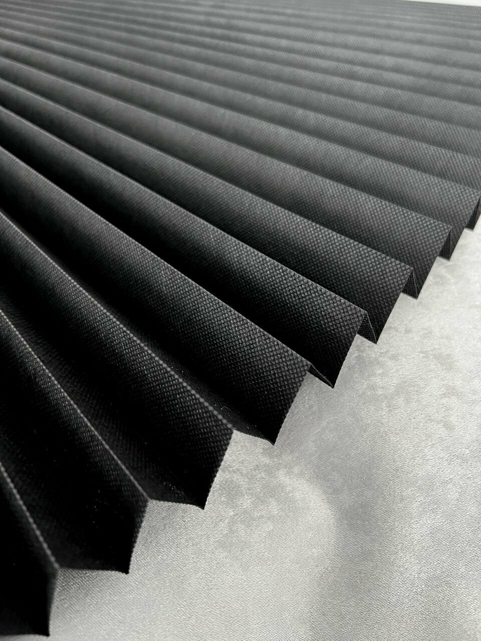 Жалюзи плиссе, чёрный блэкаут, 90х180см, самоклеящиеся, без сверления