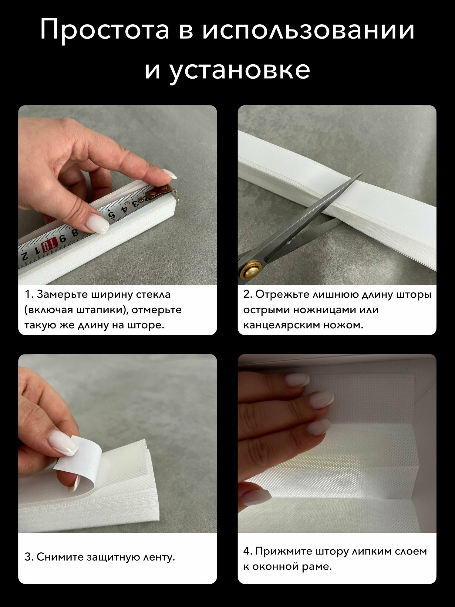 Жалюзи блэкаут на окна самоклеящиеся белый 90х180, шторы плиссе на липучке, жалюзи самоклеющиеся, тканевые жалюзи, горизонтальные жалюзи