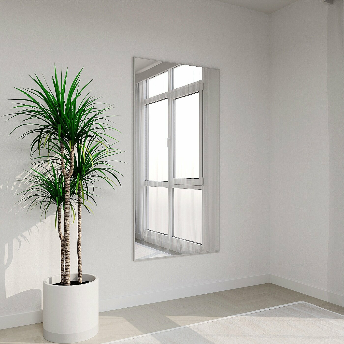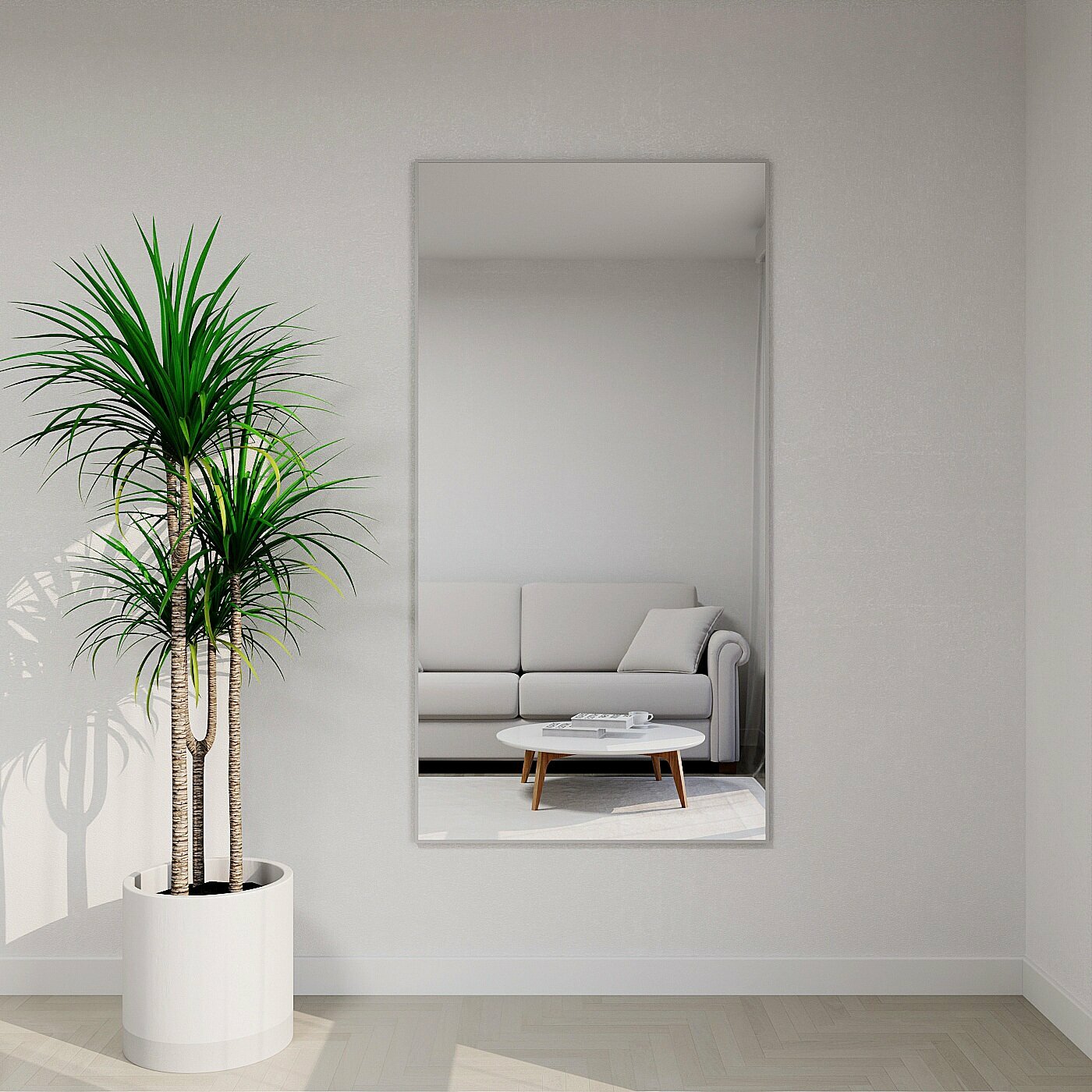 Зеркало настенное в алюминиевой раме Market-house , 190х60 см. Белое