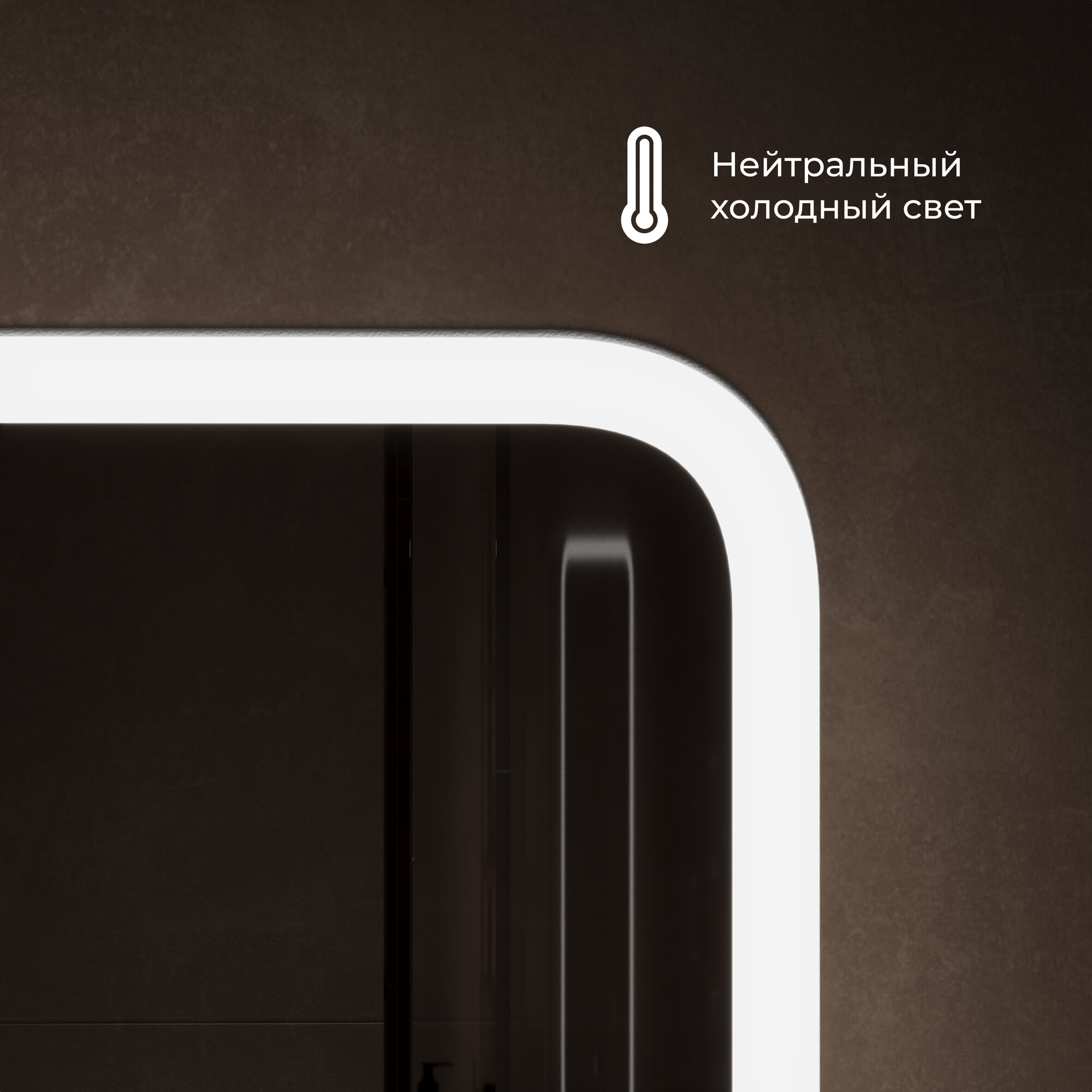 Зеркало настенное для ванной КерамаМане 70*100 см с холодной подсветкой 6000 К с сенсорной кнопкой