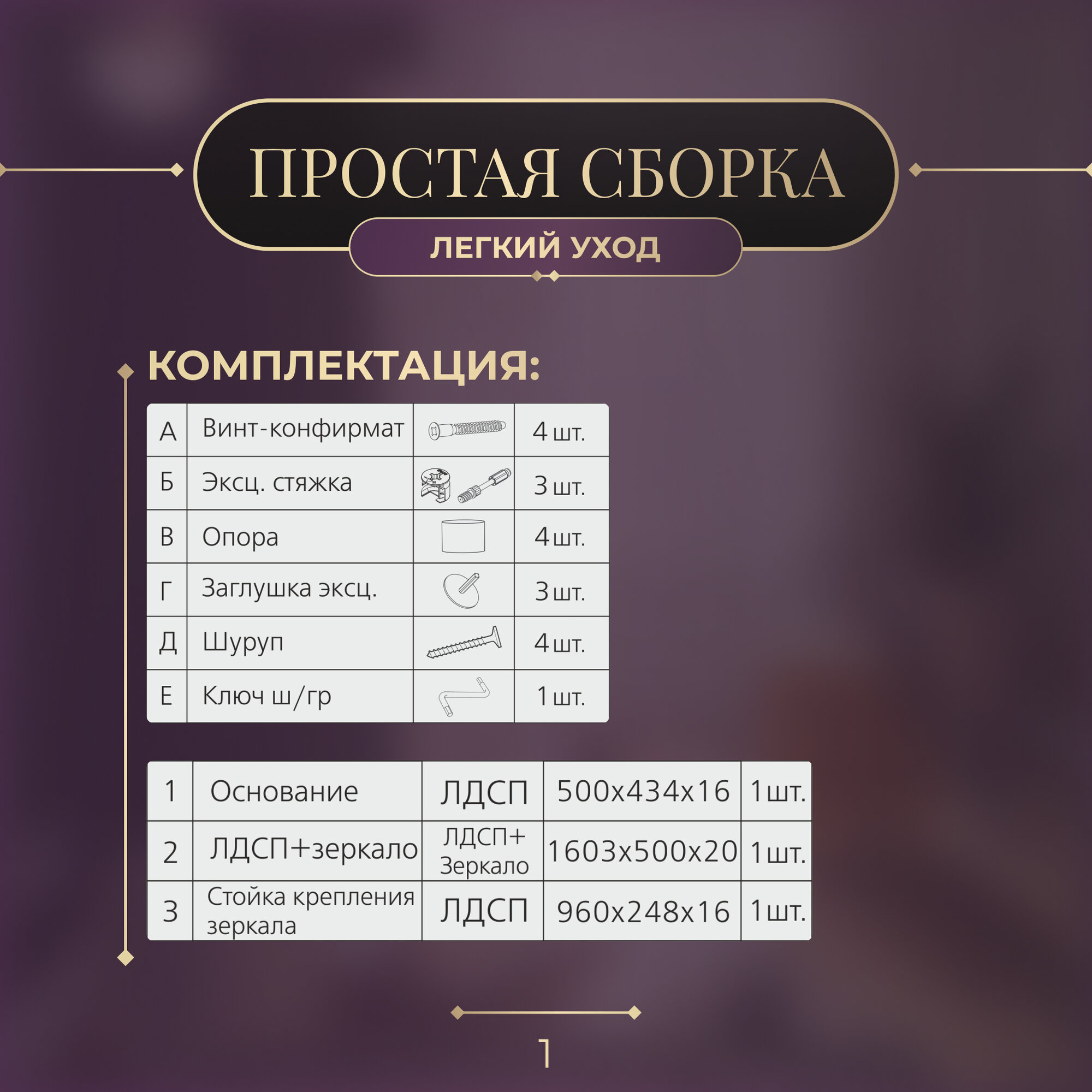 | Дополнительная информация | ЛДСП 16 мм. Зеркало 4 мм. |