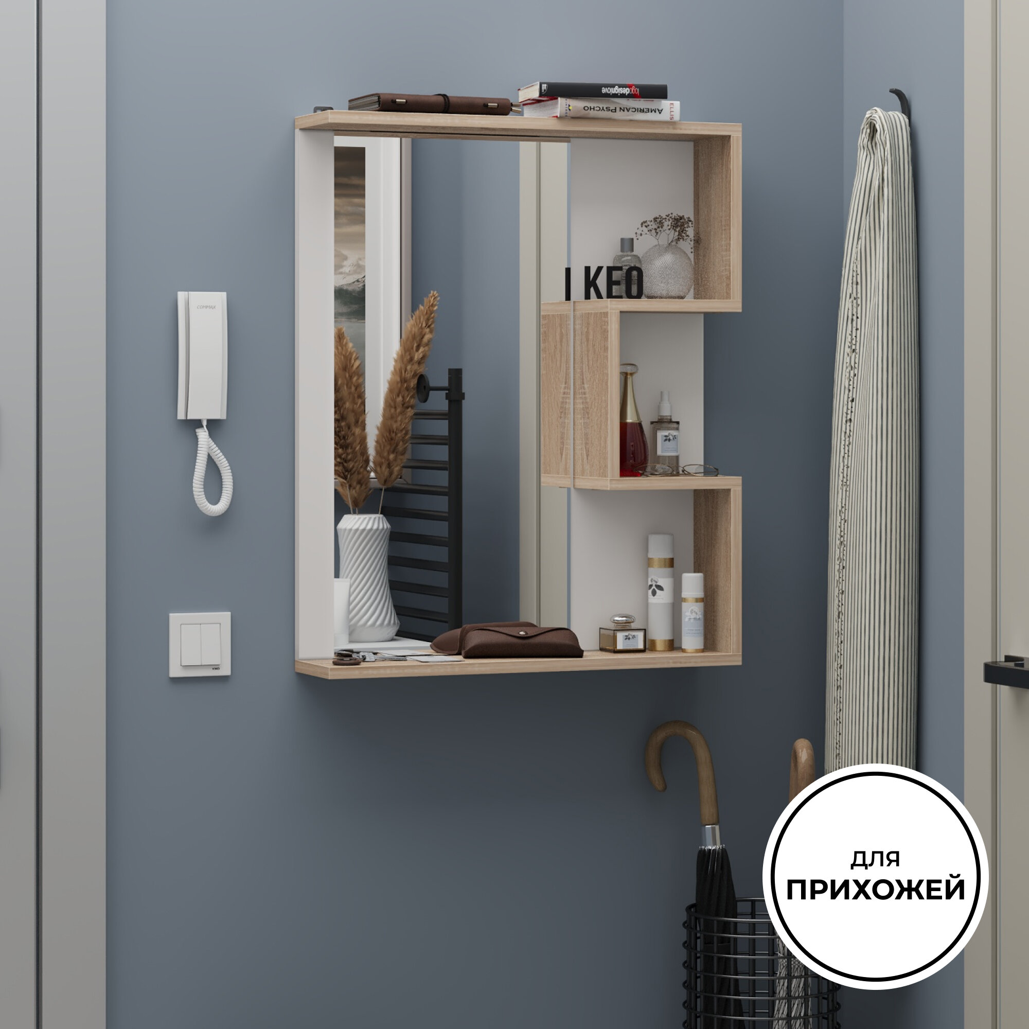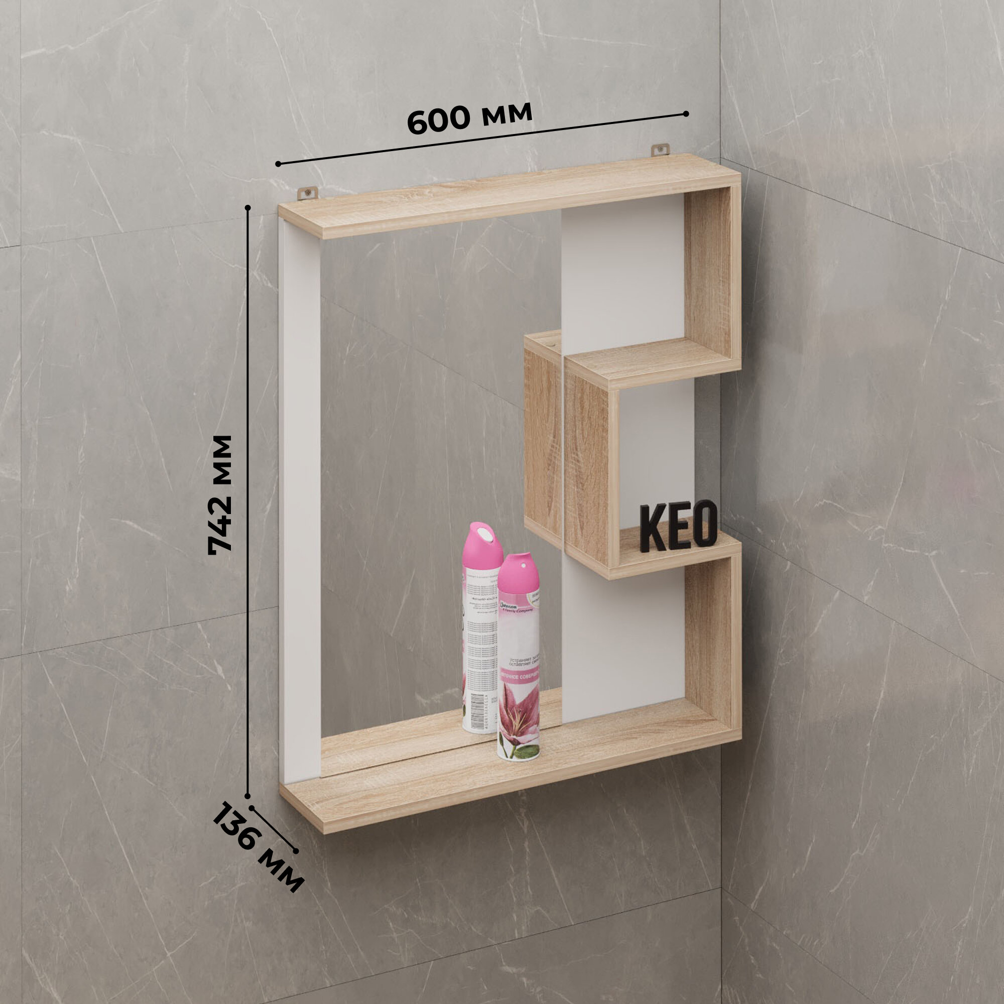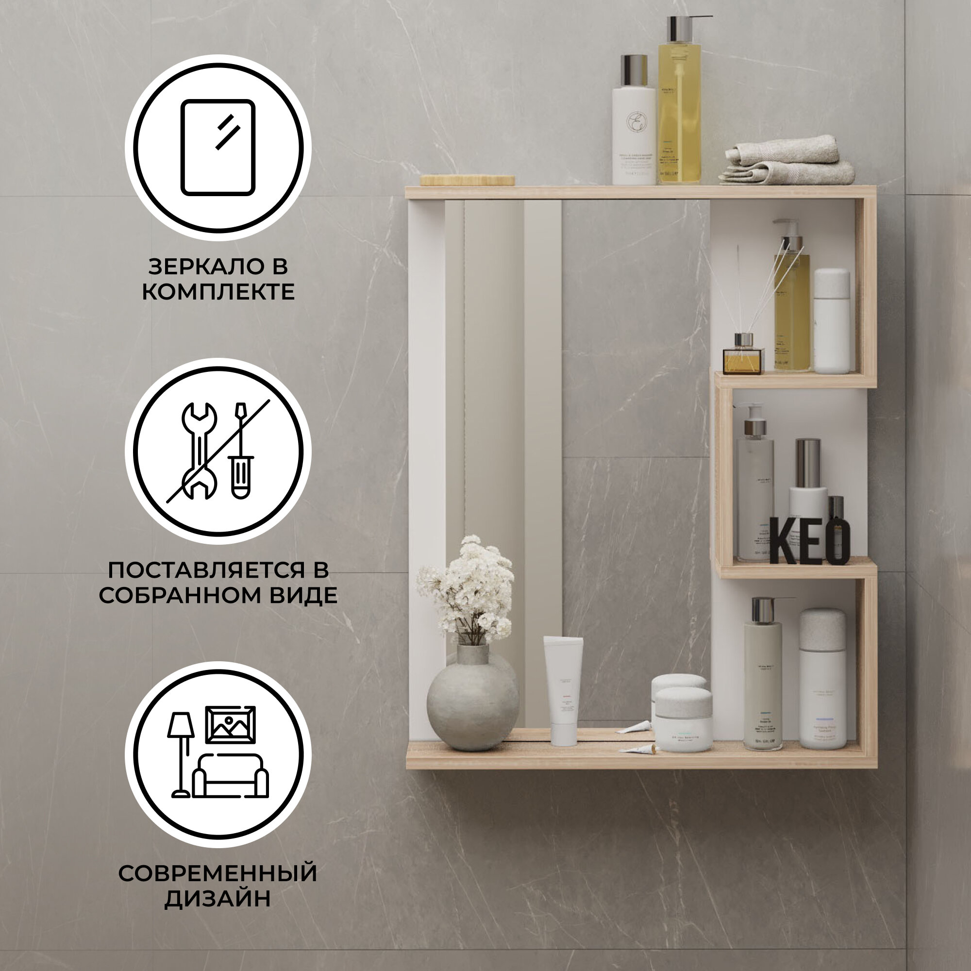 Зеркало с полкой "Кео" ПЛЗ-020 для ванной, прихожей, гостиной и детской 74х60х13 см интересное: