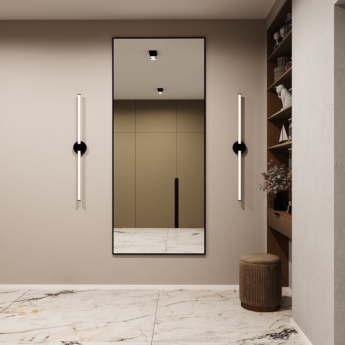 Зеркало настенное в алюминиевой раме Market-house , 190х60 см. Черное