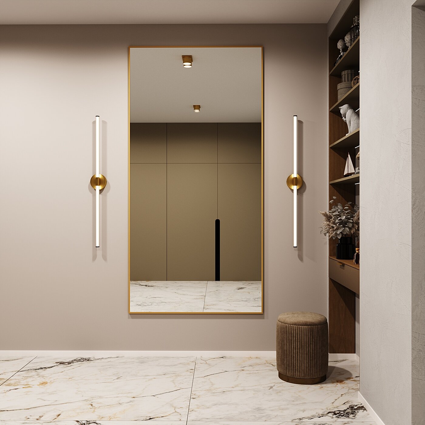 Зеркало настенное в алюминиевой раме Market-house , 190х60 см. Золото