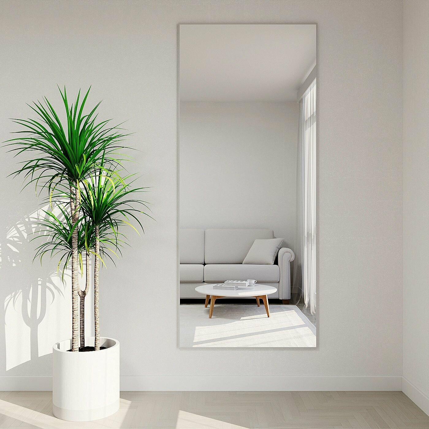 Зеркало настенное в алюминиевой раме ALUMIRROR, 190х60 см. Белое