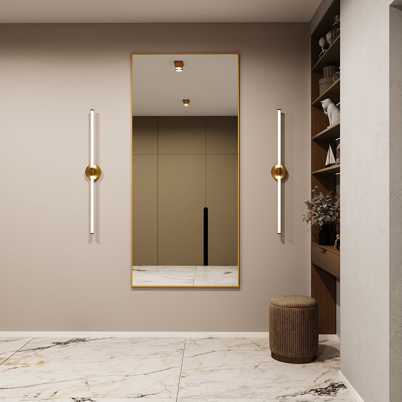 Зеркало настенное в алюминиевой раме Market-house , 180х60 см. Золото