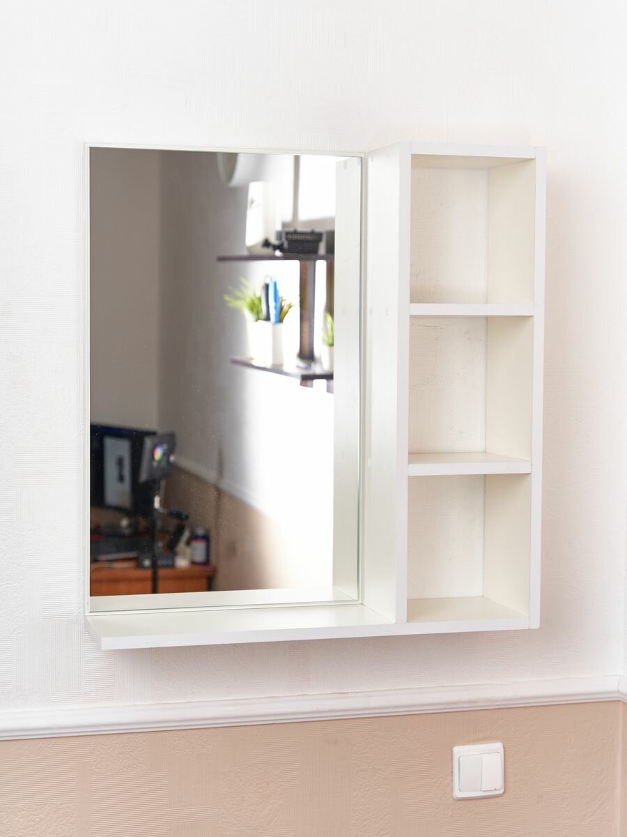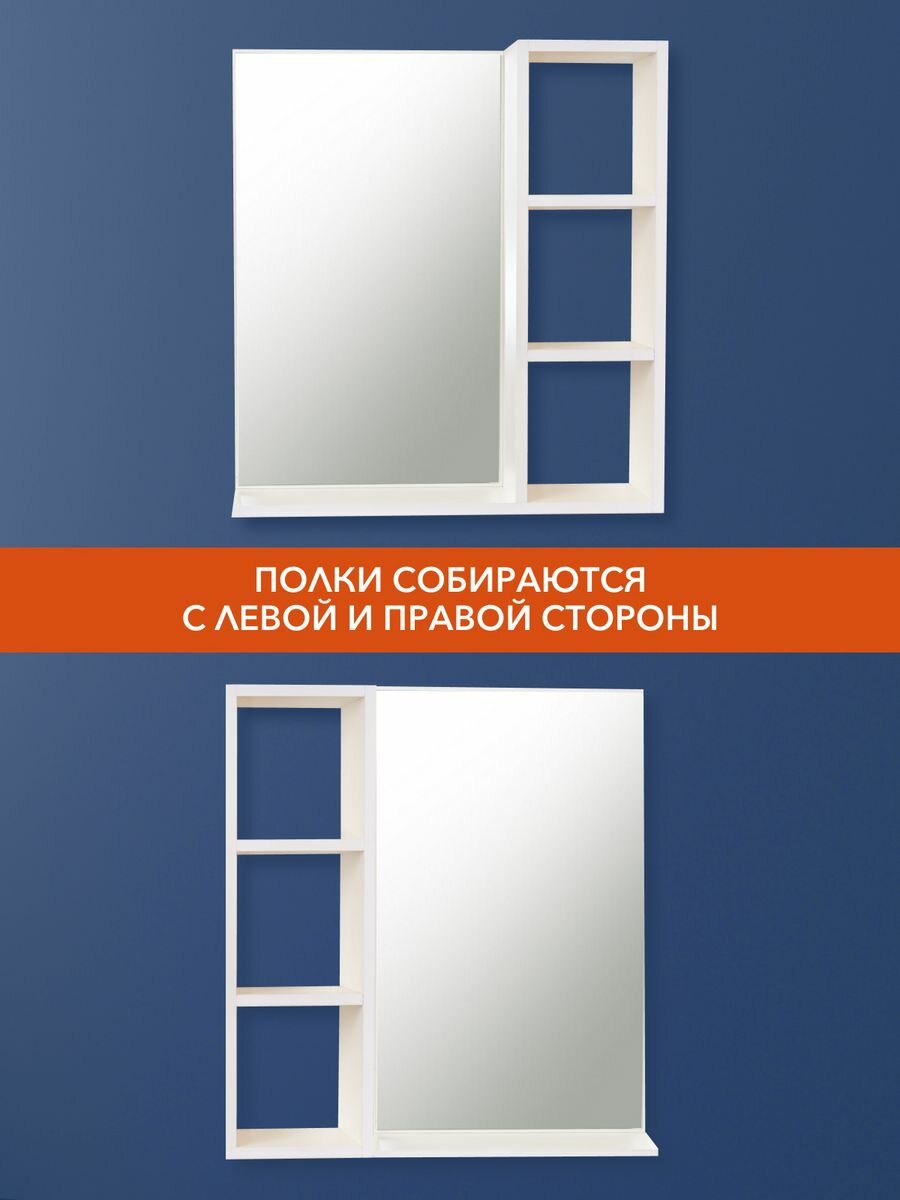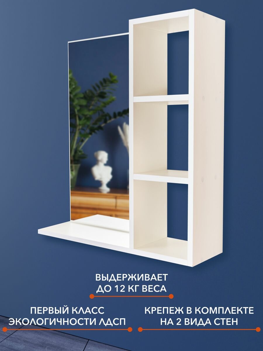 Настенное зеркало с полками белого цвета для прихожей и ванной "Мебельная фабрика Агора" интересное:
