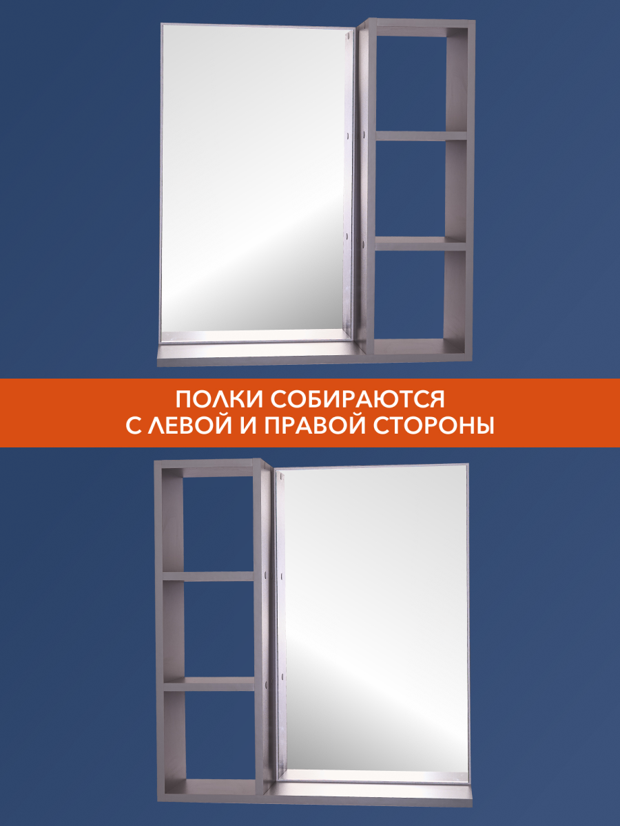 Купить Настенное зеркало с полками цвет серый для прихожей и ванной "Мебельная фабрика Агора"
