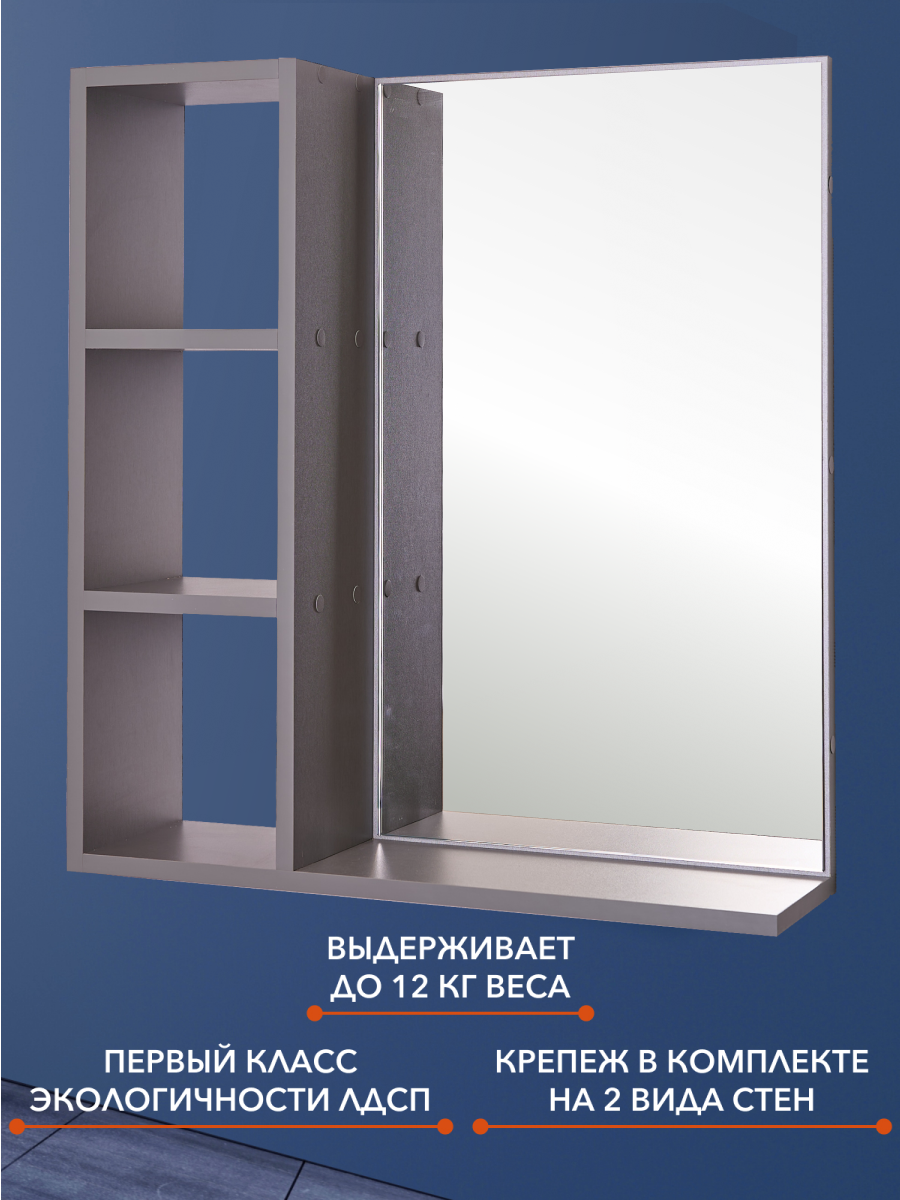 Настенное зеркало с полками цвет серый для прихожей и ванной "Мебельная фабрика Агора" интересное: