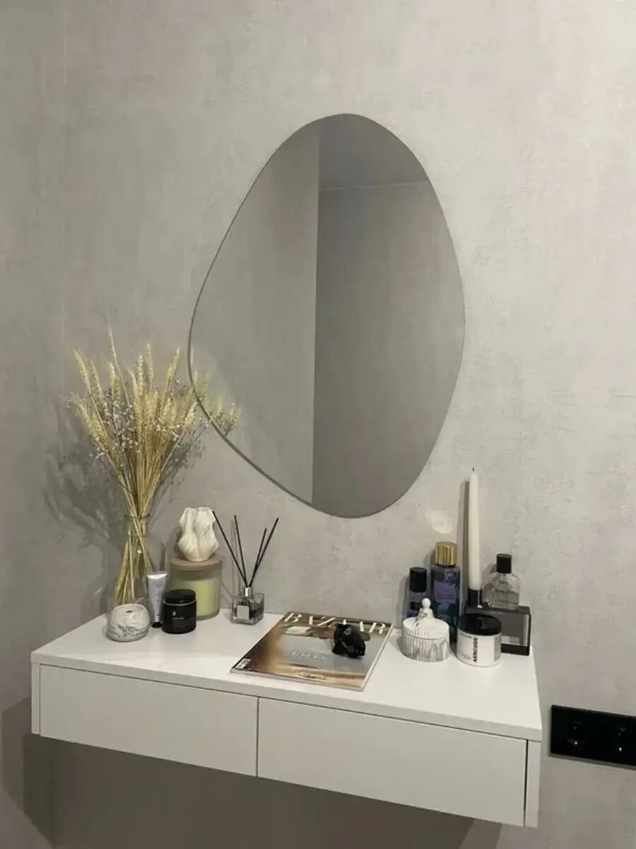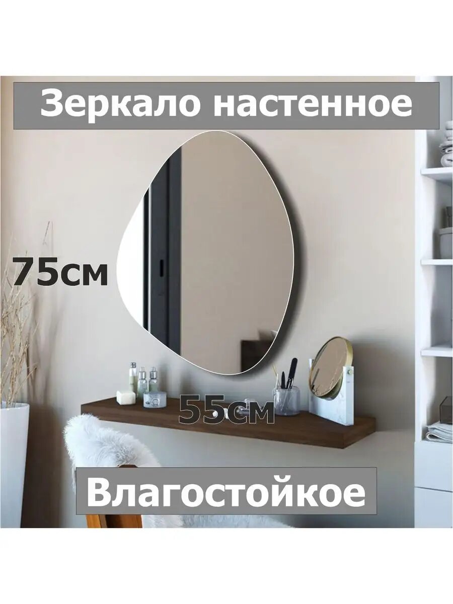 Зеркало настенное, фигурное "Камень№5", 70х55см, ассиметричное, интерьерное, влагостойкое, без рамы, для ванной, прихожей, гостиной, спальни.