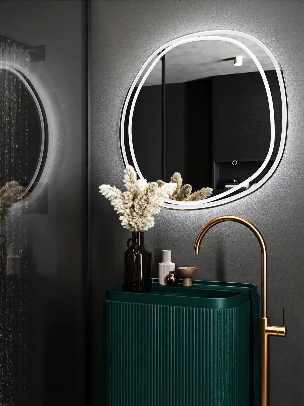 Зеркало для ванной Omega Glass Порто SD40 с подсветкой 73x73 см ассиметричное интересное: