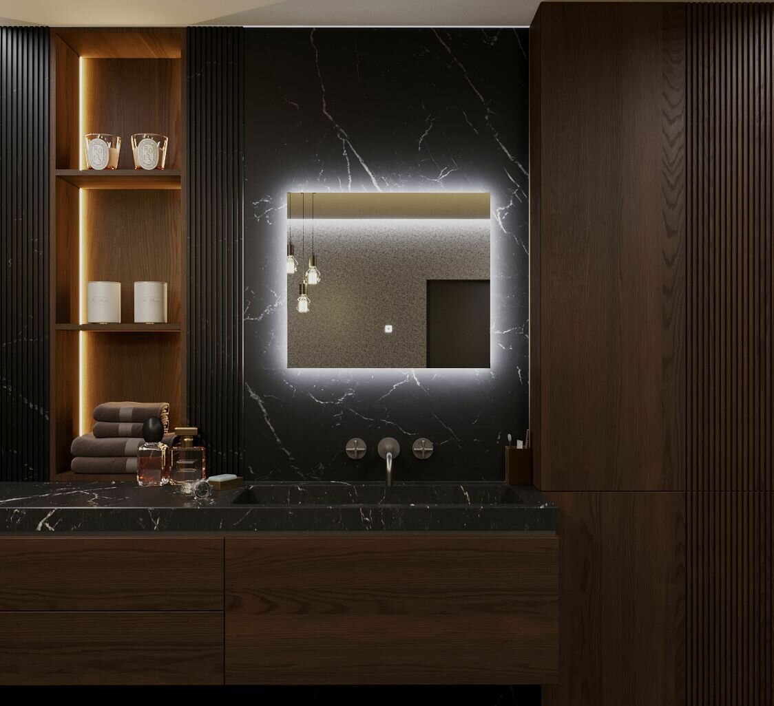 Зеркало в ванную с подсветкой настенное Alias Квартал 90*60 для ванной с тёплой LED-подсветкой, сенсорная кнопка