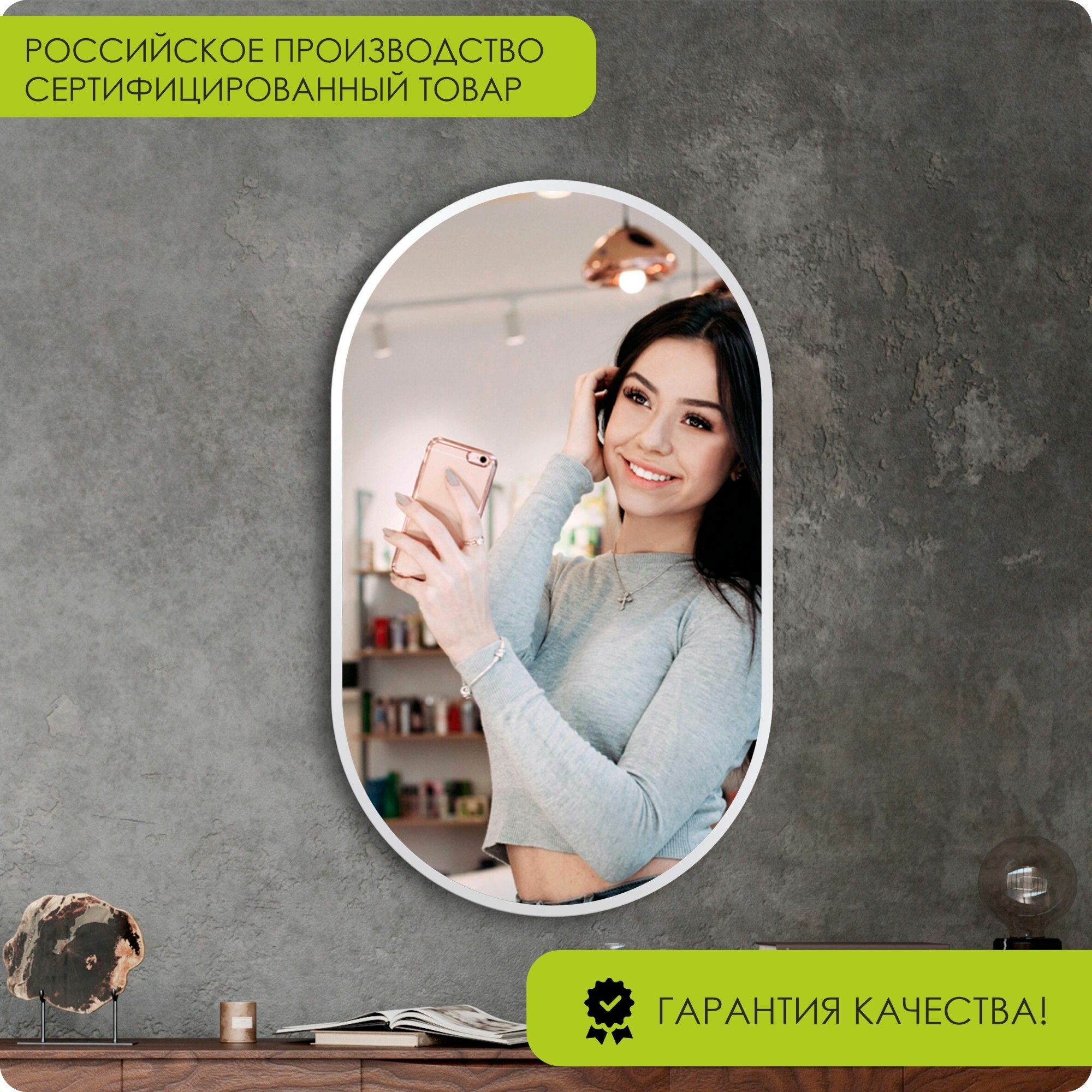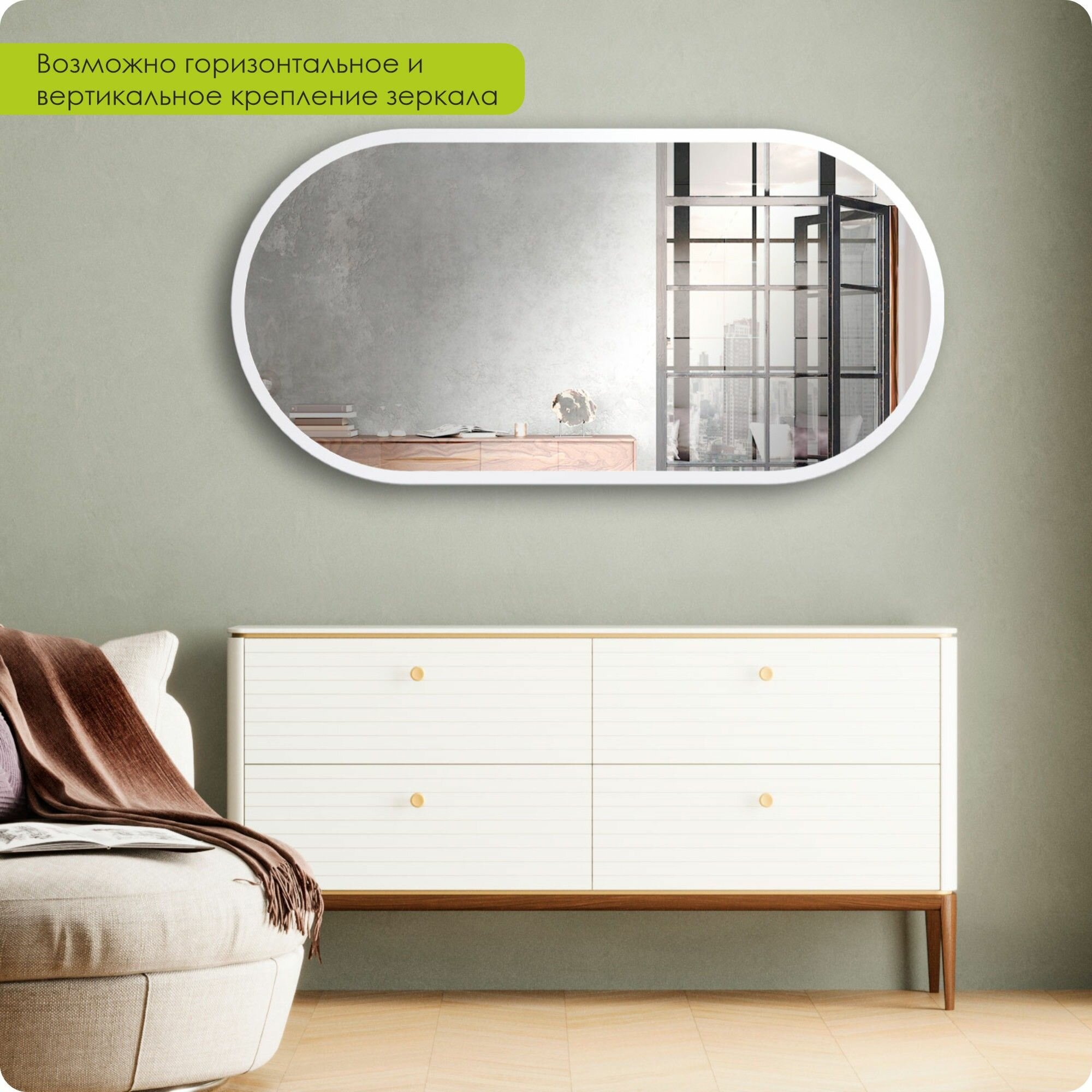 Зеркало настенное, зеркало, 60х120 овальное, белое