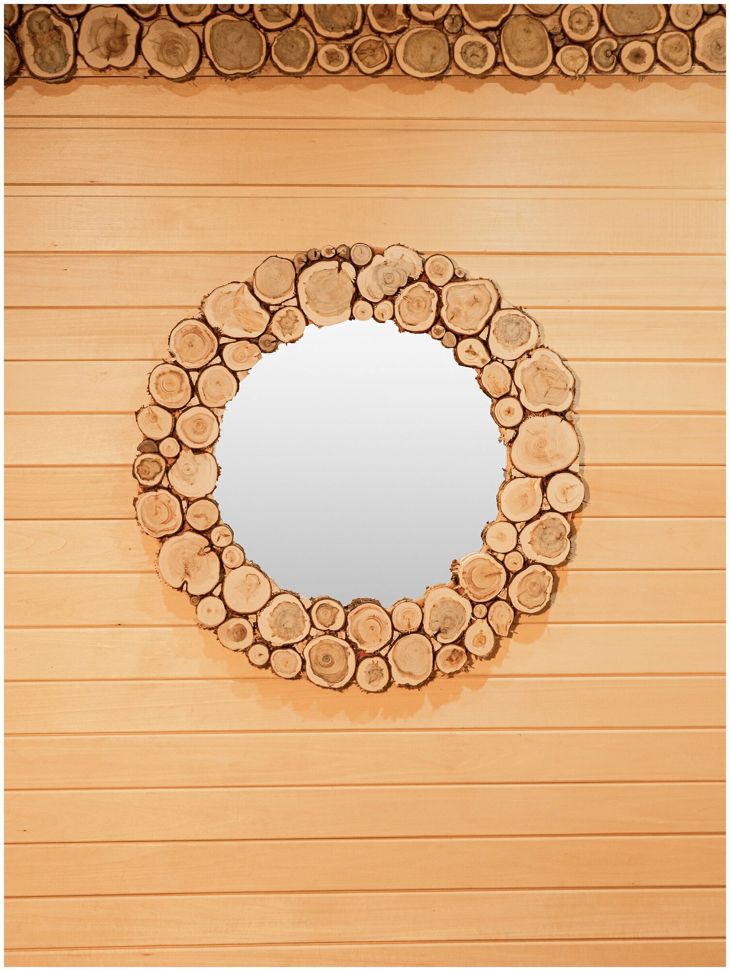 Зеркало для бани и сауны в раме из можжевельника круглое интересное: