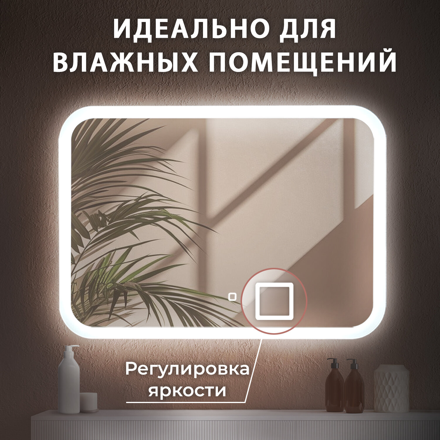 Зеркало для ванной комнаты Silver Mirrors "Джобс" с холодной подсветкой, сенсорным выключателем, 70x70 см