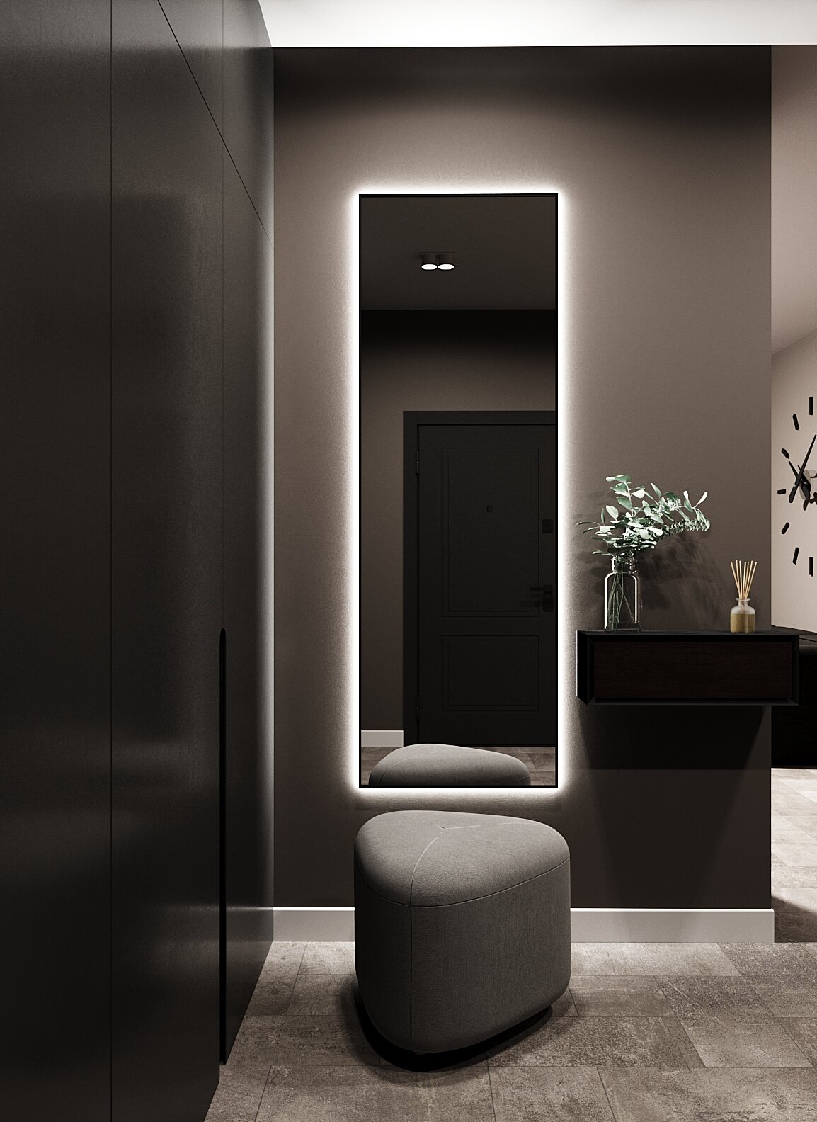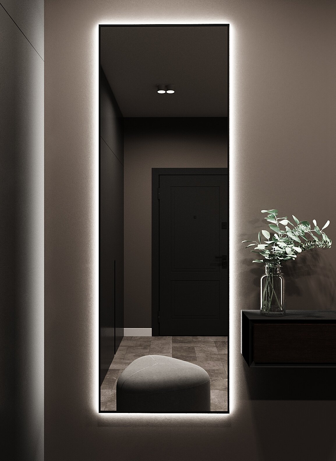 Зеркало с подсветкой в алюминиевой раме, настенное, ONE MIRROR, 180х60 см. Черное. Свет: Нейтральный белый 6000К интересное: